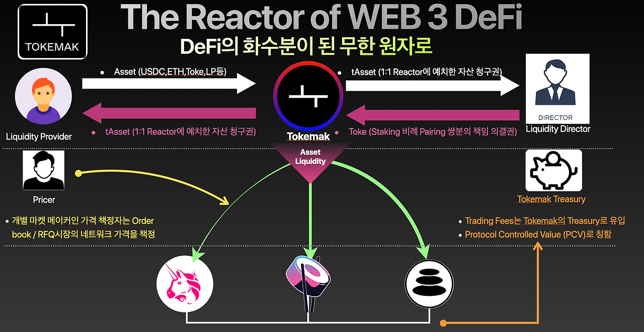 작년 DeFi의 트렌드를 이끌었고 지금도 건재한 Uniswap와 유니 스왑을 하드 포크 해서 탄생한 Sushi Swap과 같은 AMM(Auto Market Maker)들에게 유동성을 공급하는 화수분 역할을 하던 Tokemak. Tokemak은 안정적인 유동성 공급을 위해 용광로 모델을 도입하는 한편, 시장에서 회수하는 거래수수료(Trading Fee)를 유동성 고갈이나 이자수익 지급금 부족 등의 비상상황에서 활용할 수 있도록 PCV로 만들어 차곡차곡 쌓아두고 있습니다. 그리고, 그들은 이자 변동 모델을 도입하여 Tokemak에 유동성공급자의 쌍 (LP & LD)에게 끊임없는 Asset Staking을 독려합니다.