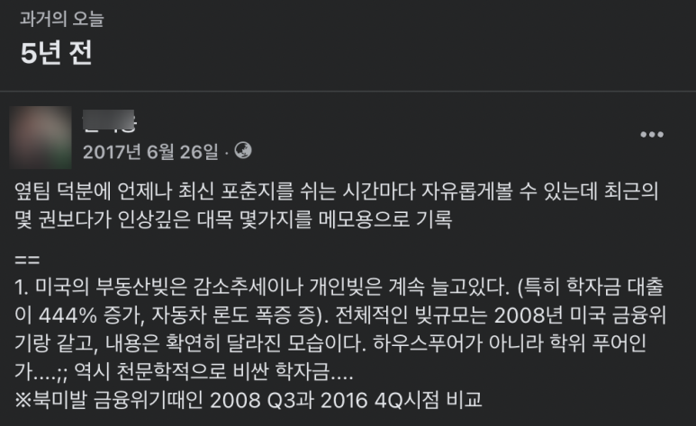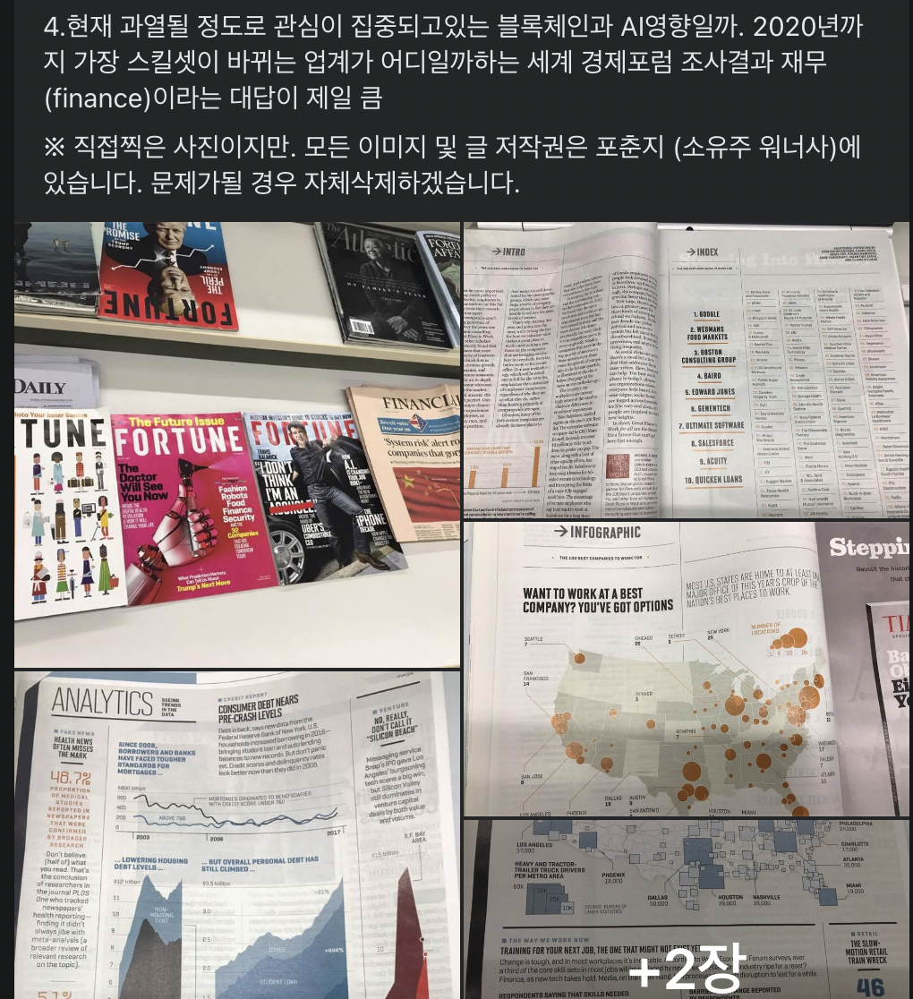 근무 중인 회사의 블록체인 랩과 함께 일하기 시작한 2018년보다 1년 일렀던 2017년의 오늘. 페이스북이 가르쳐주는 5년 전 과거 글이 알람으로 떴습니다. 그 당시 저는 옆팀 덕분에 포츈지를 쉬는 시간 마음껏 읽어보고 인상이 깊은 내용을 정리하여 담벼락에 남겼더군요.