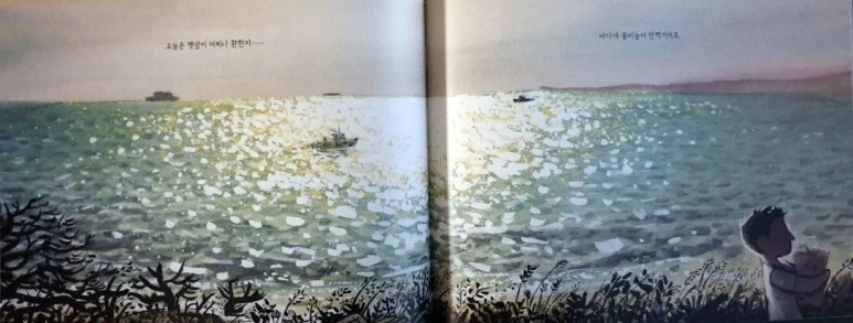아빠와 함께 하고 있지만 바다는 계속 소년의 마음을 묵직하게 누르고 있다.