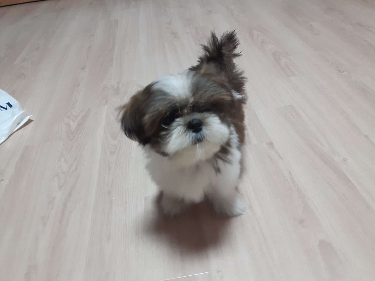 '시츄'라는 품종으로 10년 전에 많이 유행했던 품종이라고 했다. 이 개는 태어난 지 두 달이 되었고, 기본 접종도 다 마친 상태이니 오늘 데려갈 수 있다고 했다.