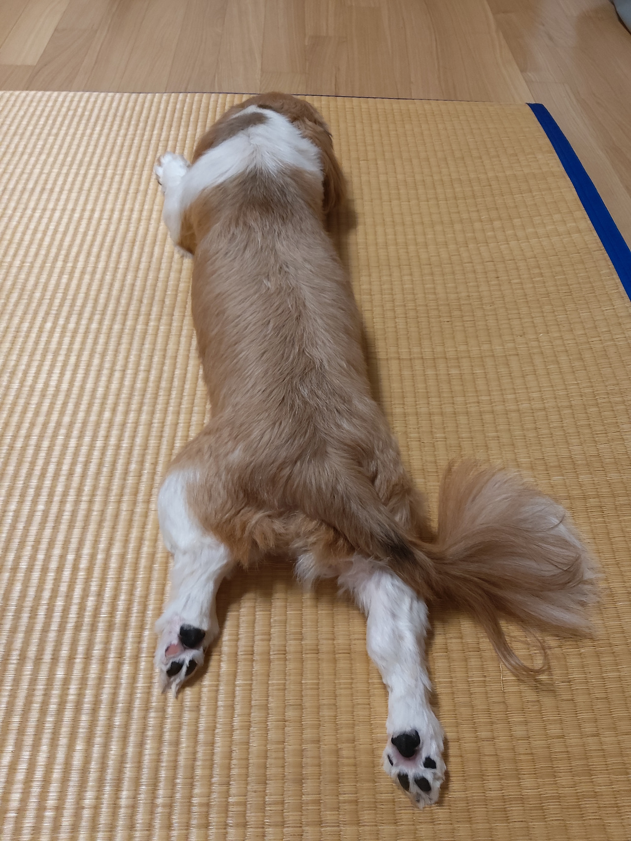 여름에 돗자리를 깔아주면 아주 좋아한다.