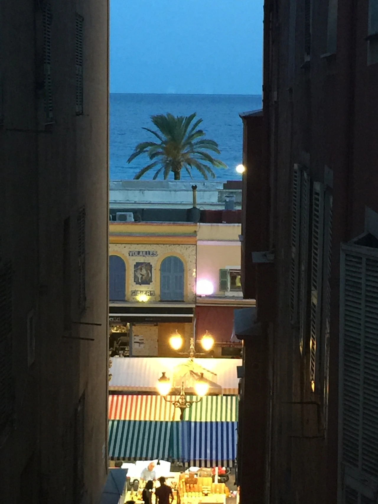 첫날 Nice의 숙소에서 바라본 시장과 지중해와 야자수