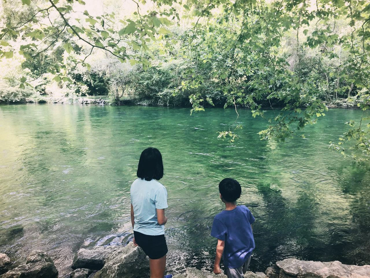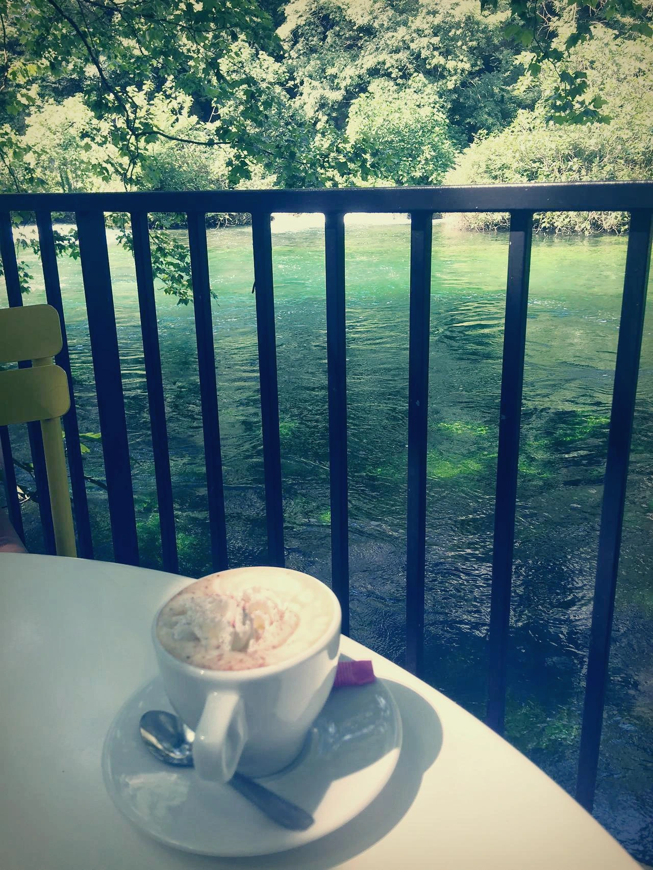 선명한 파스텔 빛 노란색과 오렌지 색 의자와 테이블이 어우러진 근사한 야외 카페에 앉았다. 물론 물가 나무 그늘 아래 아무곳에 앉아도 된다. 하지만 멋진 의자에 앉아서 향긋한 커피를 마시고 싶다. 시원한 나무 그늘과 서늘한 바람, 물소리, 투명한 물 위를 떠다니는 오리들의 움직임, 옆자리에 얌전히 앉은 개들을 바라보는 일. 완벽한 순간이다. 아이들은 딸기와 바닐라 셰이크를 각각 먹고, 나는 생크림이 가득 올려진 카푸치노를 먹었다. 오리들이 자맥질을 하며 먹이를 잡는 모습이 귀엽다. 그렇게 셋이 함께 고요하고 평화로운 자연의 품에서 한참을 머물렀다.