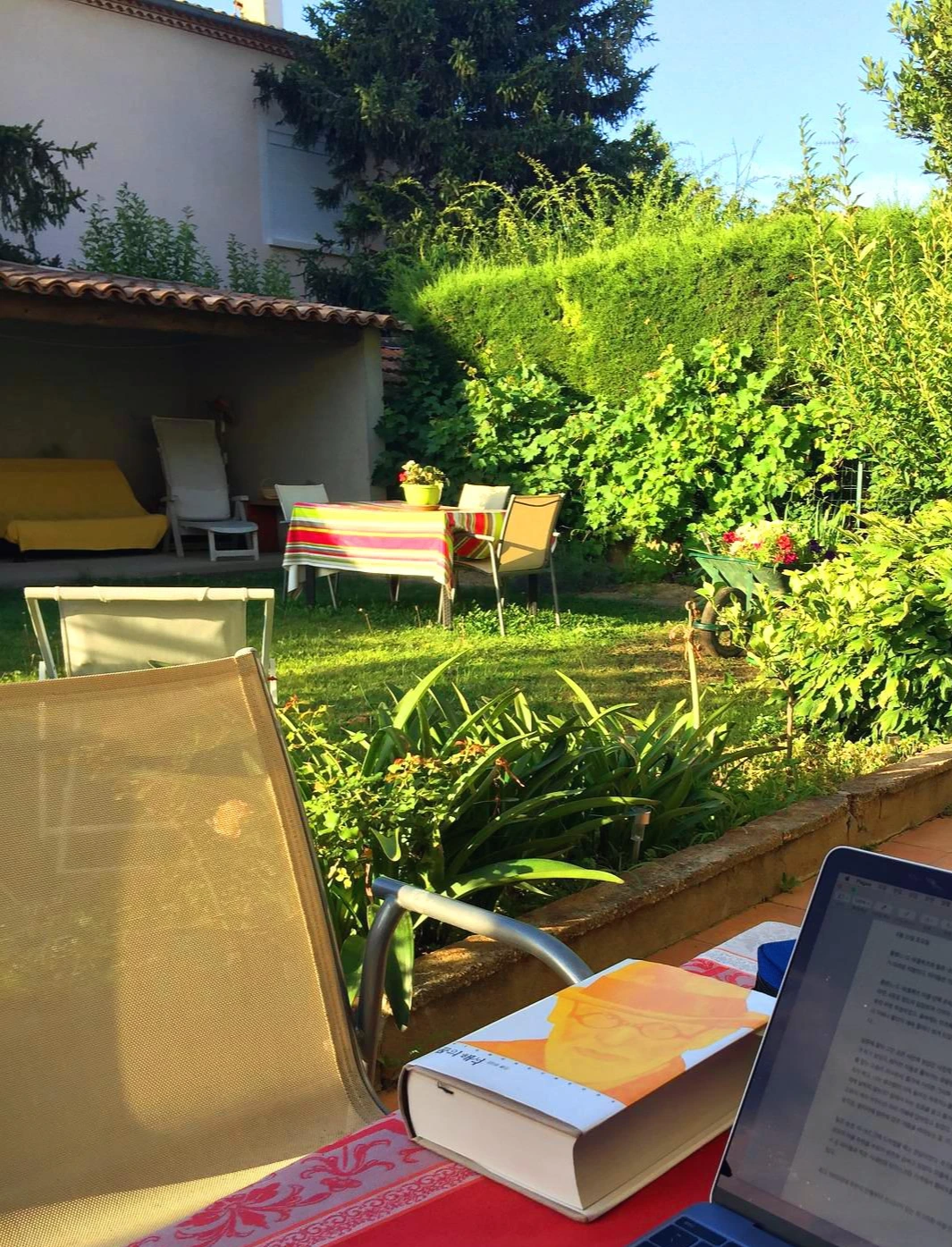 어느새 여행을 시작한 지 열흘이 넘어가고 있어서, 저녁에는 외출하는 대신 조용한 정원에서 햇살을 즐기고, 각자 책을 보며 쉬기로 했다. 사실 이런 때 마음이 정말로 편안해진다. 조용한 주택가라서 그동안의 쌓인 피로와 긴장을 풀고 가기에 더없이 완벽한 공간이었다. 생전 처음 와보는 낯선 곳을 운전하고, 알아듣지 못하는 프랑스어의 홍수 속에서 여기까지 무사히 온 것이 기쁘고 감사하다. 혹시 그동안 아이들에게 엄마의 긴장감이 느껴졌다면 미안해 얘들아. 오늘만큼은 너희도 긴장을 풀고 쉬렴.