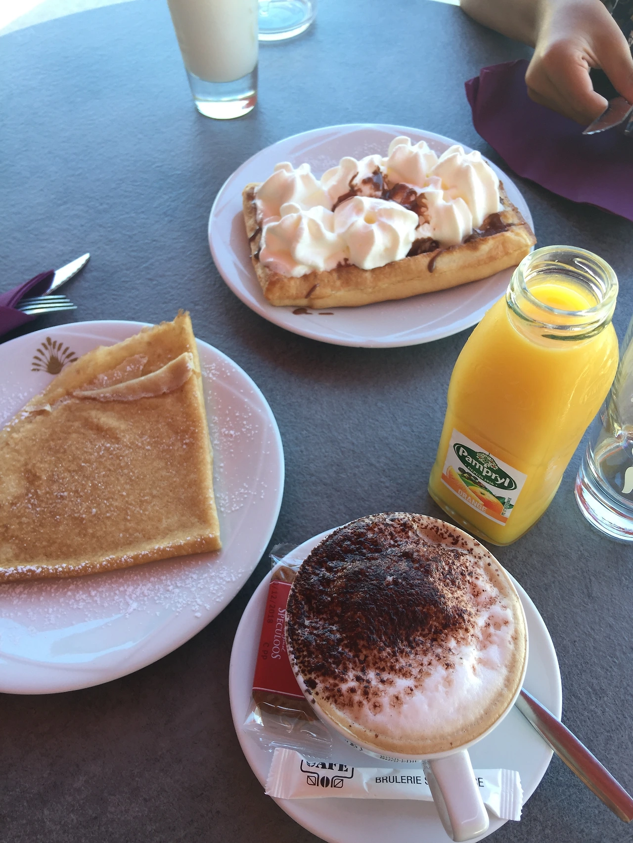 기다리며 박물관 내 카페 야외 테이블에서 커피와 크레페를 먹었다. 악센트로 보아 영국인으로 보이는 젊은 부부와 2살, 4살 정도 되어 보이는 식구가 옆 테이블에 앉아 있었다. 두 아이는 소리를 지르고 정신없이 돌아다녔다. 아이들을 자제시키느라 아빠는 한시도 편안히 있지를 못하는 것 같았다. 우리나라처럼 습도는 높지 않지만 오전 11시 30분의 태양은 이미 작렬하고 있었다. 음성은 낮았지만 아빠의 인내심이 곧 폭발하지 않을까 걱정이 되었다. 불행히도 우리는 이 가족과 함께 투어를 하게 된다.