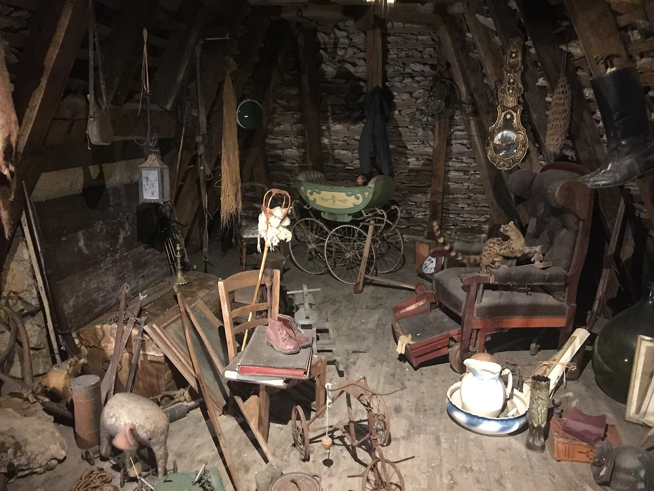 삼층 건물을 박물관으로 사용하고 있는 곳을 방문했다. 관람객은 우리말 고는 없었다. 일층에는 온갖 골동품과 박제한 동물들, 벽난로와 주방에서 쓰는 갖가지 오래된 물건을 전시하고 있다. 이층에는 귀족이 사용했을법한 침대와 패브릭들, 오래된 책들이 가득 찬 책장 등이 있었다. 가끔 마네킹이 사람처럼 서 있어서 섬찟한 느낌을 받을 때도 있었다. 아이들은 자기들이 먼저 발견한 신기한 물건들이 있으면 경쟁하듯 엄마를 불러서 보여준다. 이런 사설 박물관이 또 얼마나 작지만 소소한 매력이 있는지, 우리는 시간 가는 줄 모르고 집안 구석구석을 둘러보았다.