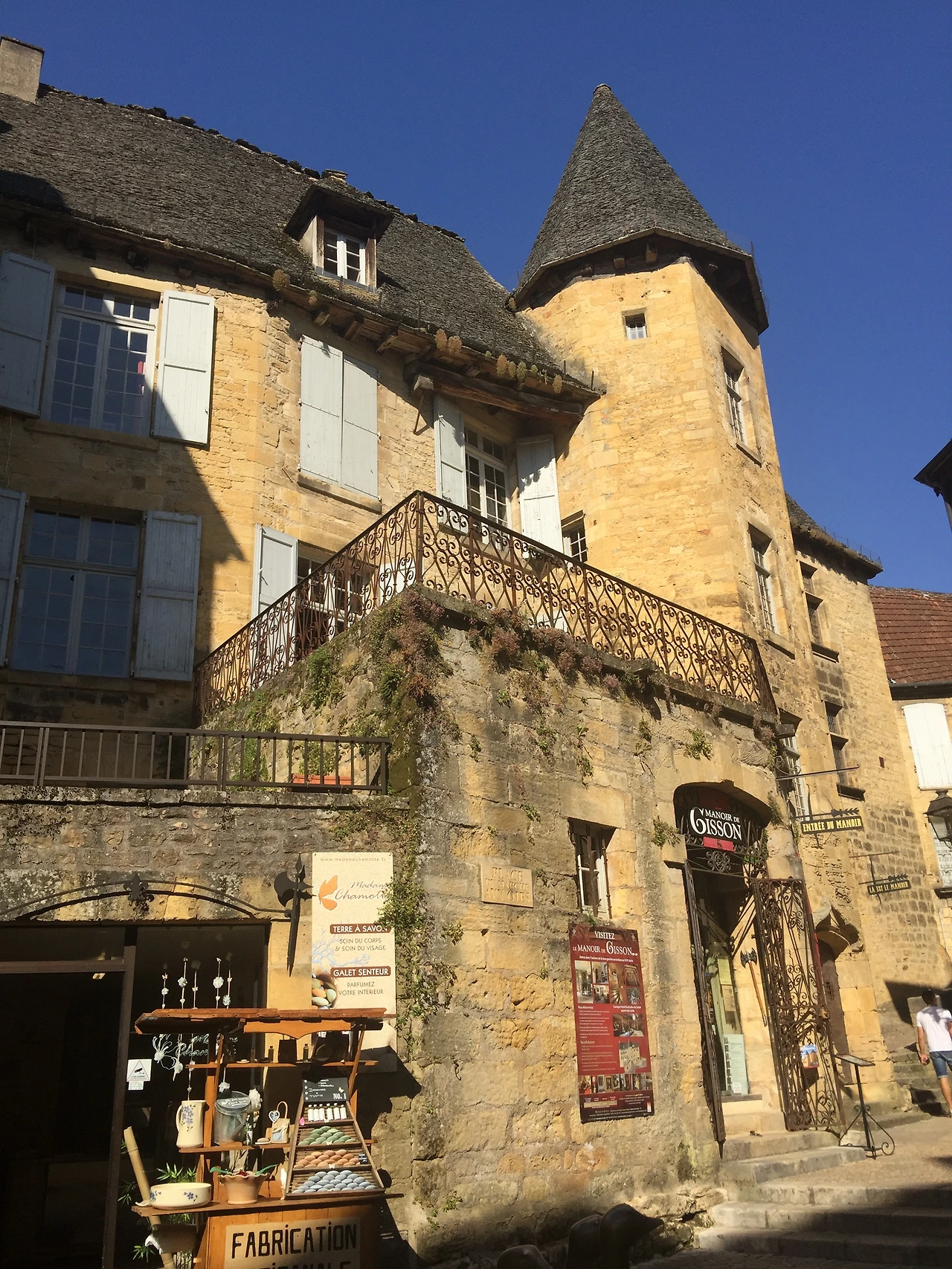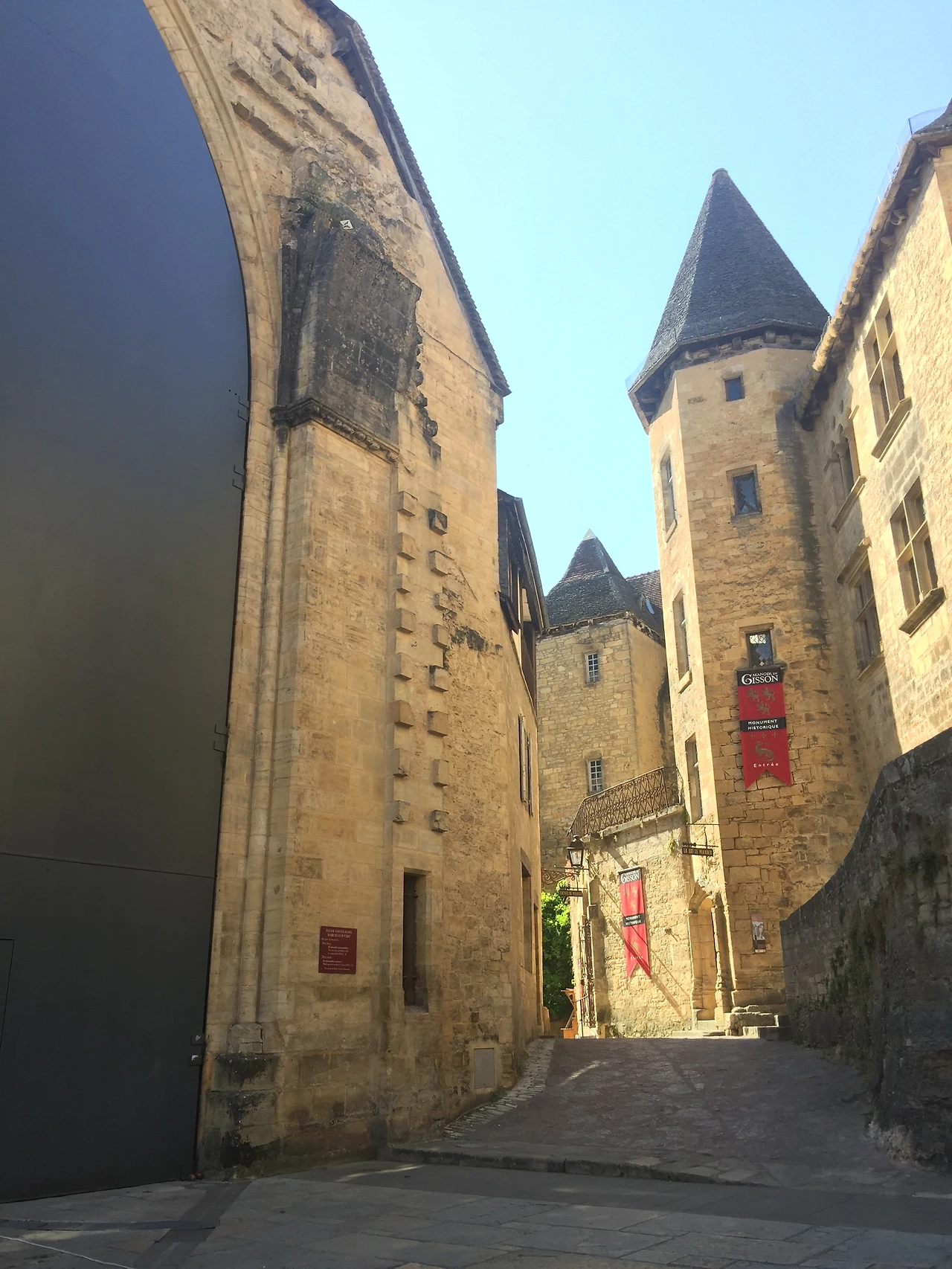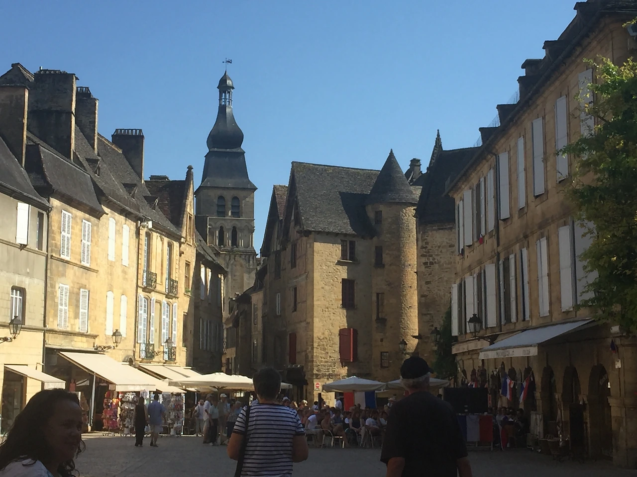그늘이 하나도 없는 땡볕 아래에 야외에 주차할 수밖에 없어서, 관람을 끝나고 차에 돌아오니 실내 온도가 무려 45도를 가리키고 있었다. 토요 장터가 열린다는 30분 거리의 샤를라 라 카네다(Sarlat-la-Canéda) 마을로 이동했다.