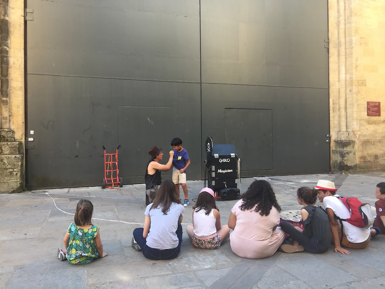 커다란 성당 옆 높은 담장 아래에선, 마술사가 공연이 한창이었다. 우리도 피곤한 다리를 쉴 겸 관람객 사이에 자리를 잡고 바닥에 앉았다. 마술사가 아들을 불러 자기 옆에 세우고 동전이 사라지게 한 후 아들 티셔츠 속에서 찾아낸다. 아직 순수한 아이는 마냥 신기해한다. 마술사의 무대 앞에 고만고만한 십 대 아이들이 10명도 안되게 앉아 있었다. 축구 경기 때문에 이분 오늘 수입이 별로 시원찮을 것 같아 안타깝다.
