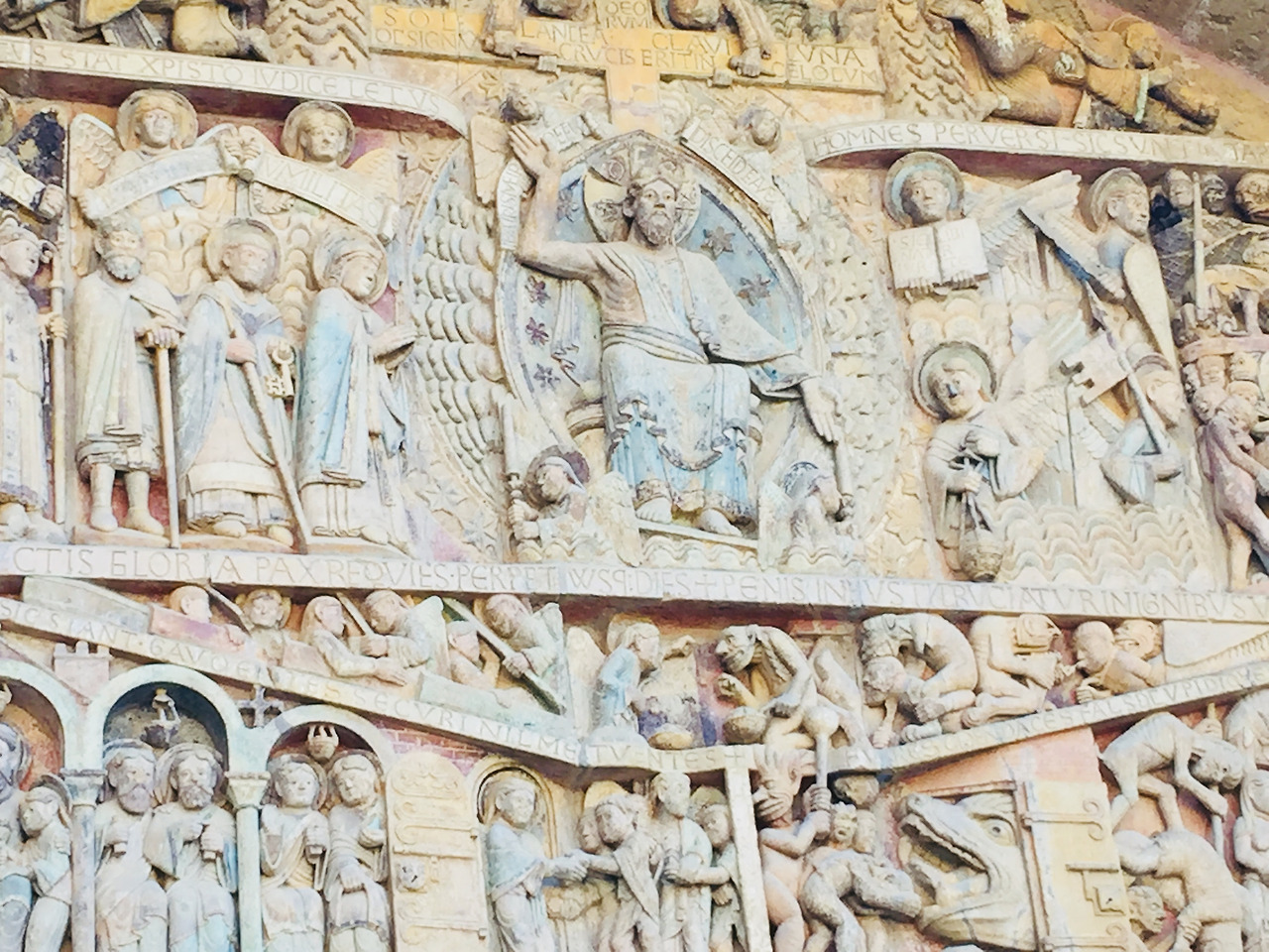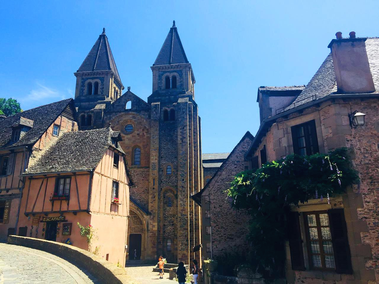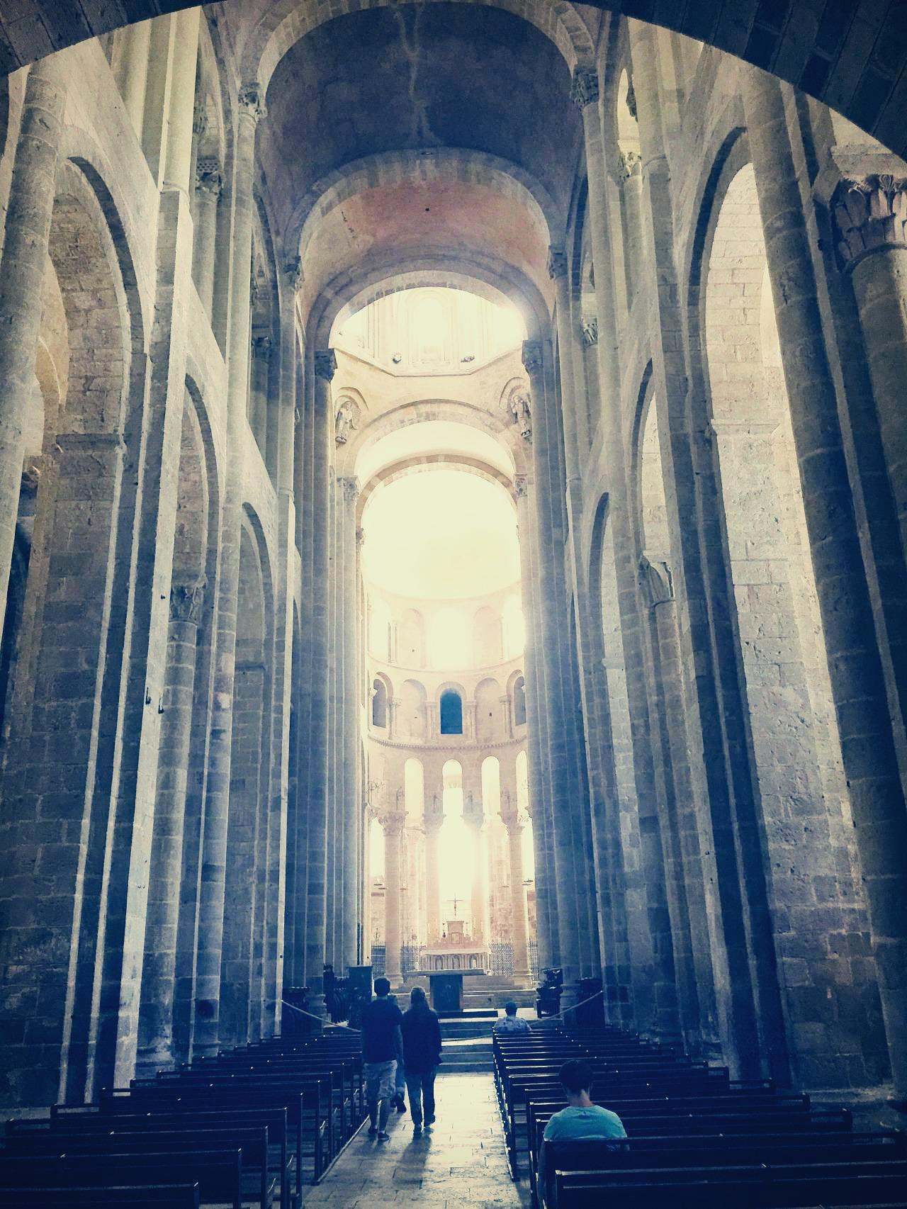 이 작은 마을의 핵심인 성당(Saint Faith Abbey Church of Conques)을 빼먹을 수 없다. 성당은 마을의 크기를 감안하면, 크고 웅장하고 단단해 보였다. 1994년에 성당을 복원하였는데, 지금의 현대적인 스테인글라스는 술 라즈 Pierre Soulages 작가의 작품이라 한다. 사람들은 왜 옛날식으로 하지 않았냐며 비난하기도 하고, 새로운 방식이라서 신선하다고 찬사를 보내기도 하니 예술에 정답은 없는 법. 경건하게 살겠다고 처음 이곳에서 수도생활을 시작했을 첫 수도승과 자신이 몸담고 있는 수도원을 부흥시키겠노라고 10년을 한결같이 유물을 탈취할 기회를 노렸던 수도승. 그들의 이야기가 담긴 이 작은 마을과 성당의 역사가 더 궁금해진다.