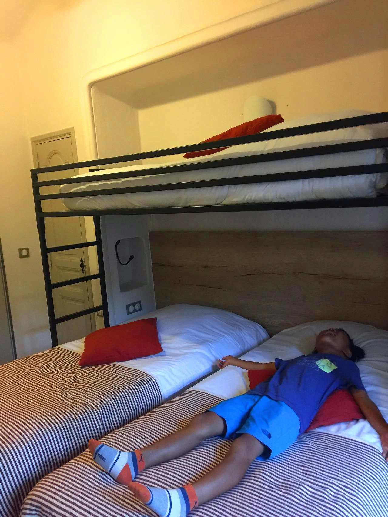 숙소는 일층에 레스토랑을 운영하고 2층과 3층에는 방을 빌려주고 있었다. 저녁 식사를 예약한 후 짐을 풀고 모두 샤워를 마쳤다. 이층 침대가 놓인 작고 귀여운 방이었다. 아이들은 이 층 침대를 반긴다. 서로 2층에 자겠다고 티격태격하더니 오늘은 누나가 내일은 동생이 자는 걸로 합의를 본다.