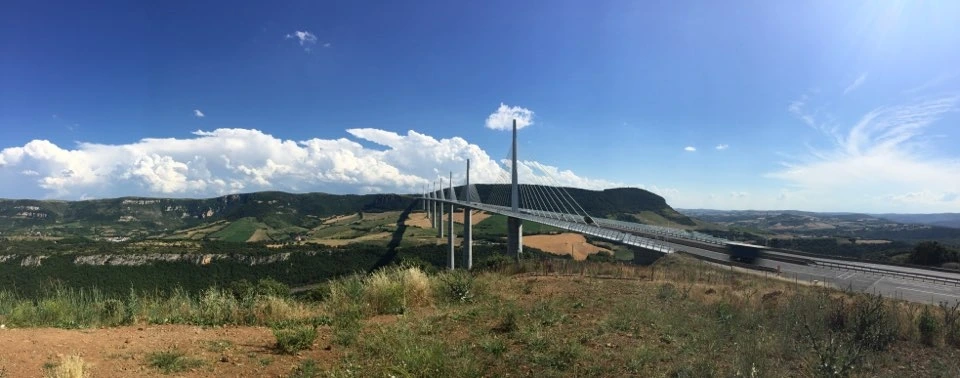 다리 시작점에 톨게이트가 있어서 11유로를 지불해야 한다. 다리에 진입해서 달리기 시작하니 몽환적인 기분이 들면서 미래의 도시로 진입하는 듯했다. 지상에서 240미터 높이 위에, 개당 700톤에 달하는 7개의 주탑에서 뻗어 나온 케이블들이 다리의 상판을 지지하는 사장교(cable-stayed bridge )이다. 협곡에서 바람이 세게 부는 날이라면 다리의 흔들림이 느껴질 것 같다.