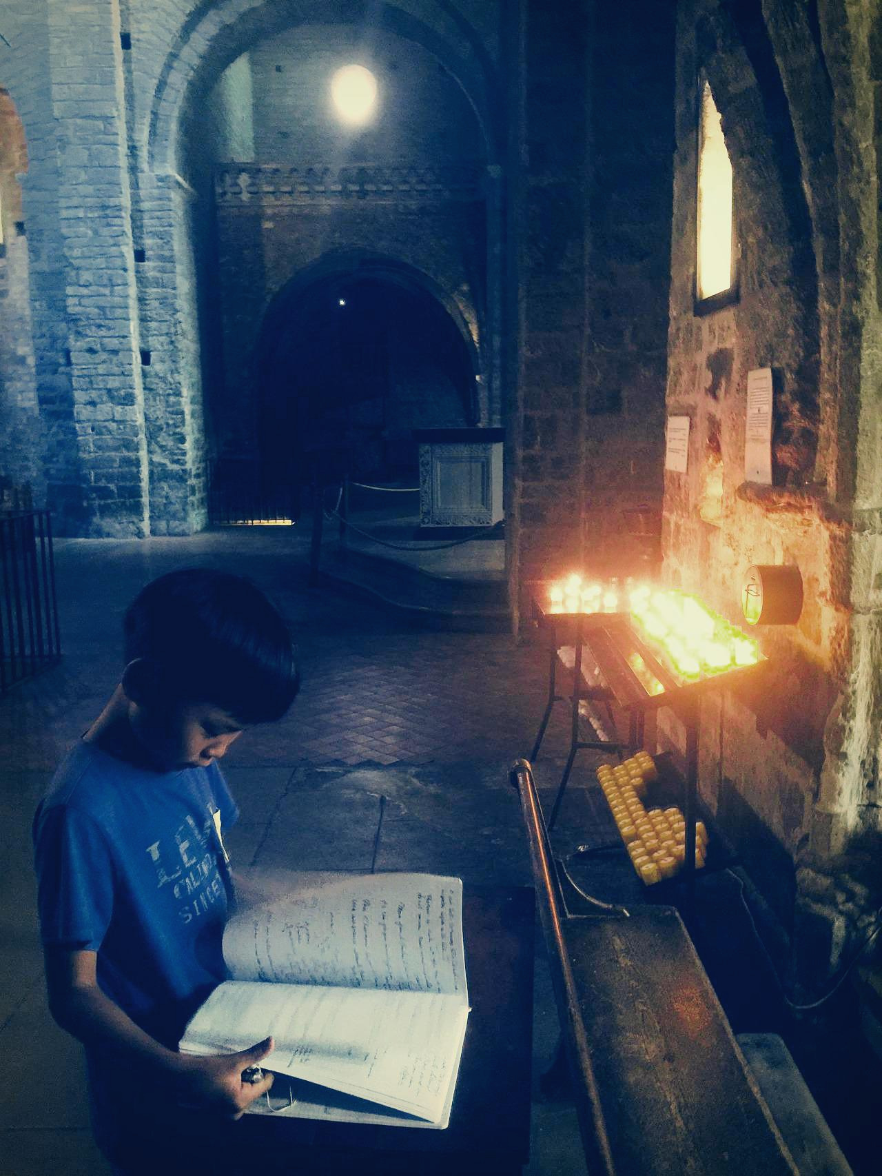 벌써부터 태양이 뜨겁게 달아오른다. 시원한 수도원의(Saint-Guilhem-le-Désert Abbey) 성당 안에 들어가 초를 켰다. 이 녀석들은 북한에서 온 김정은이라고 방명록에 쓰려고 한다. 얘들아 제발 참아줘.
