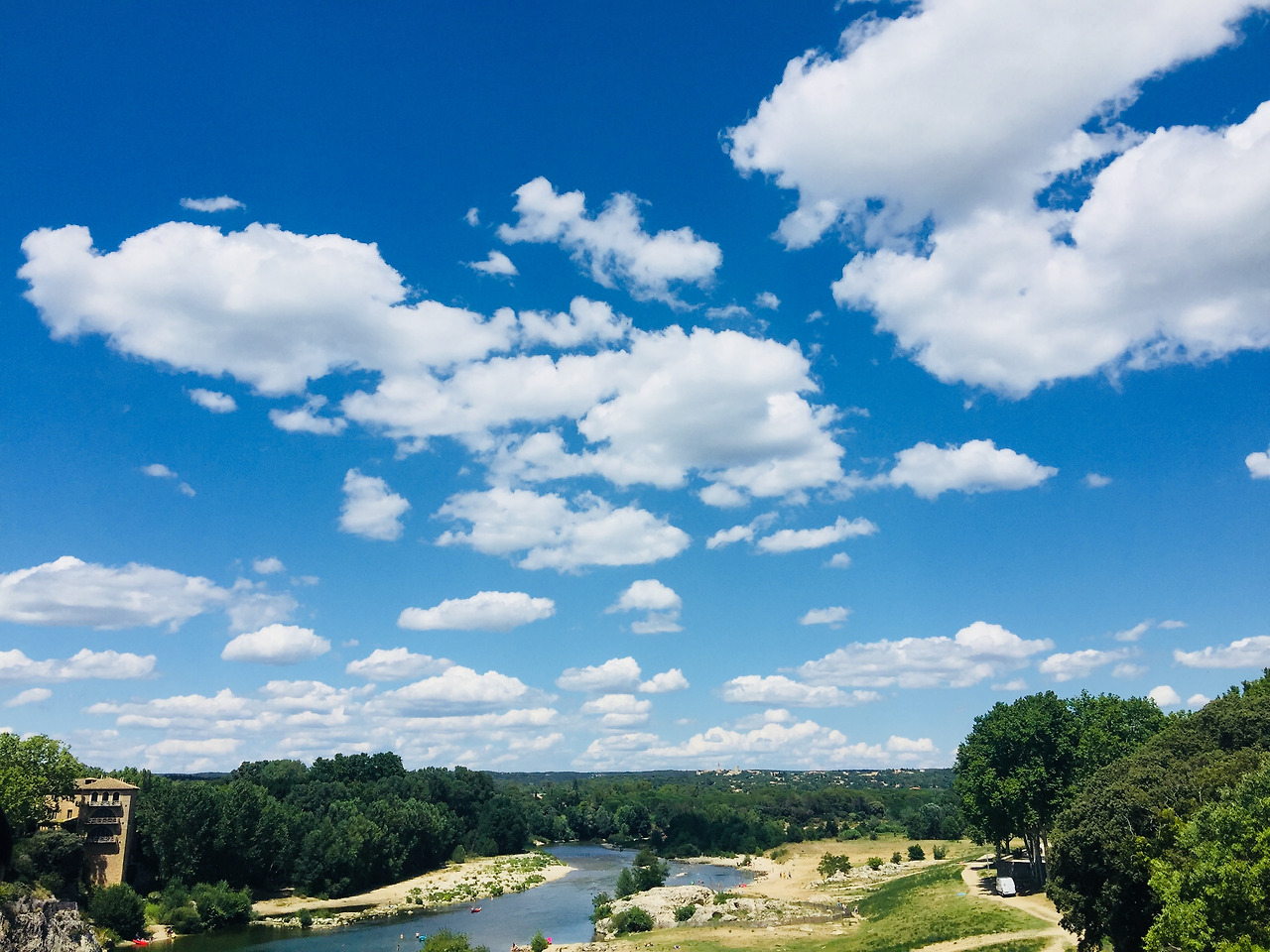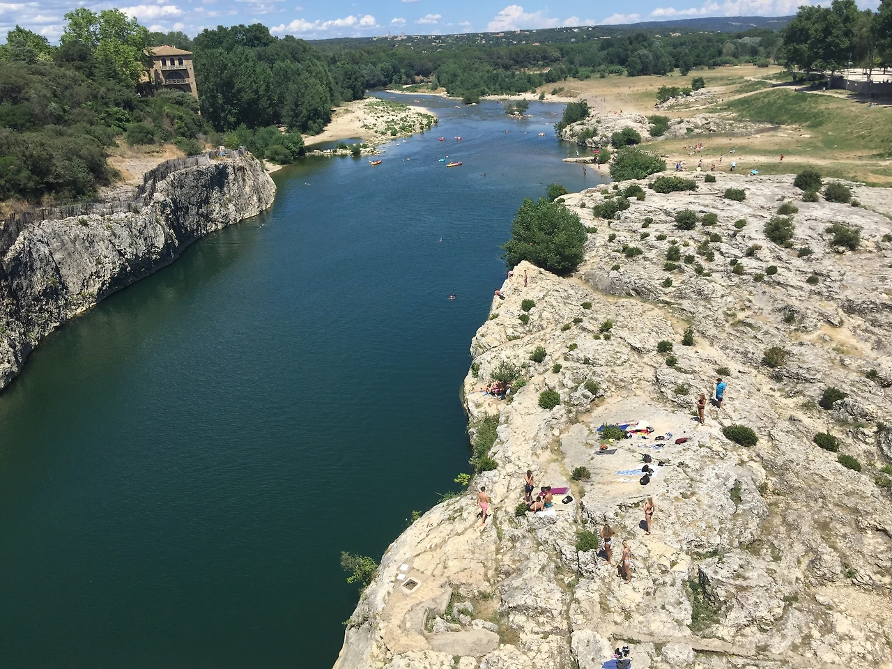 전시관에서 다리까지 이어지는 길을 따라 걸었다. 사람들이 제법 많다. 다리 아래로는 넓고 수량이 풍부한 가르 강(Le Gard)이 흐른다. 역사적인 가치도 있고, 보존 상태며 조형미며 어디 하나 빠지는 것이 없는 것 같다. 강물과 드넓은 들판이 이오랜 구조물과 어우러진 모습은 아름답다.