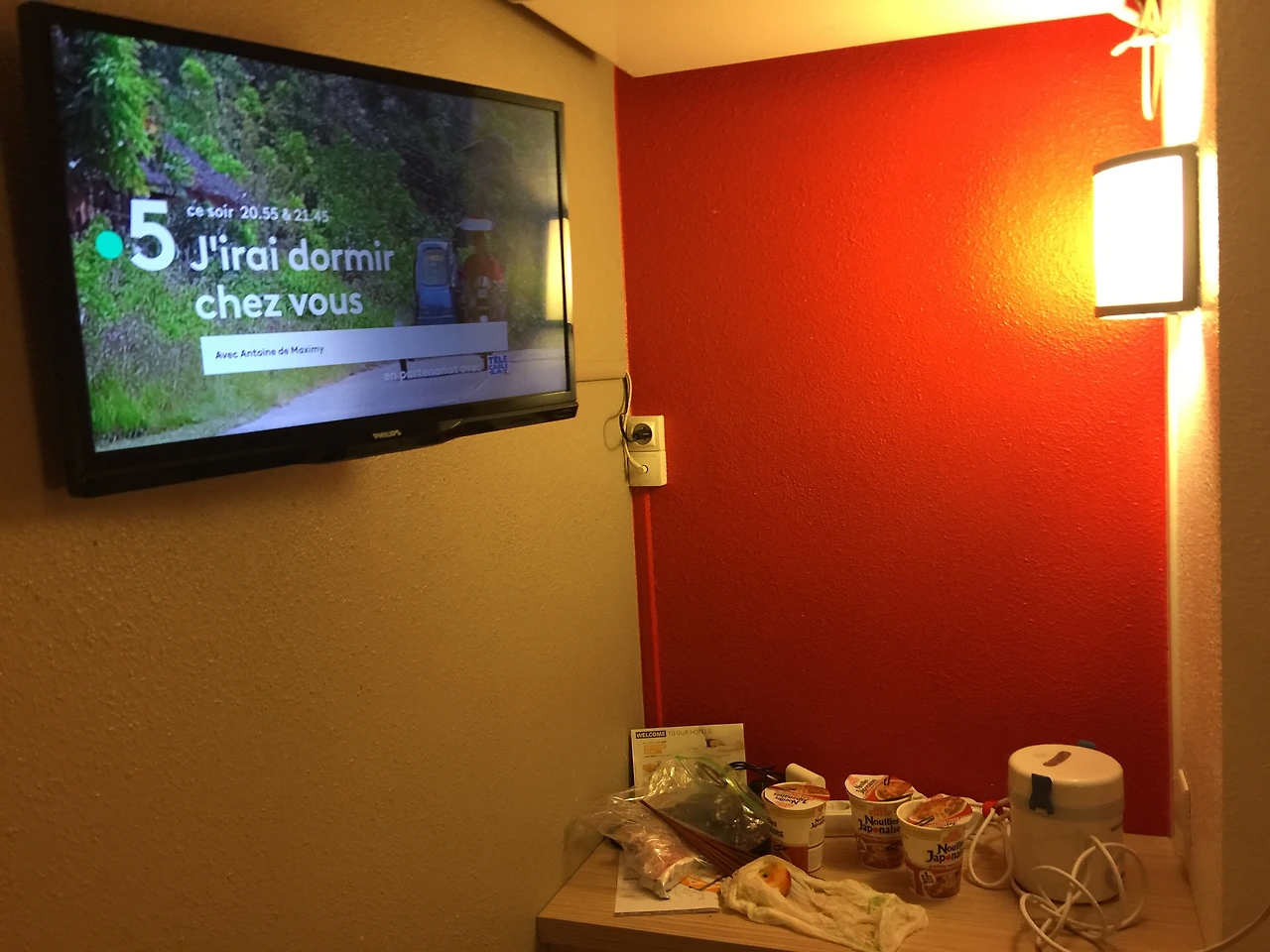 어차피 하룻밤만 묵을 곳이라 최소한의 짐만 들고 숙소에 들어왔다. 벙커 침대가 놓여 있고 간신히 한 사람이 지나갈 수 있는 여유 공간이 있다. 입구 반대편 벽에 붙은 미니 탁자와 바로 옆에 딱 한 사람만 들어갈 수 있는 넓이의 샤워장과 변기가 있다. 전기포트도 없어서 우리의 만능 미니 전기밥솥에 물을 끓이고 마트에서 사둔 일본 컵라면에 한국에서 가져온 라면 수프를 넣어서 먹었다. 납작하고 달콤한 유럽 복숭아를 후식으로 먹었다.
