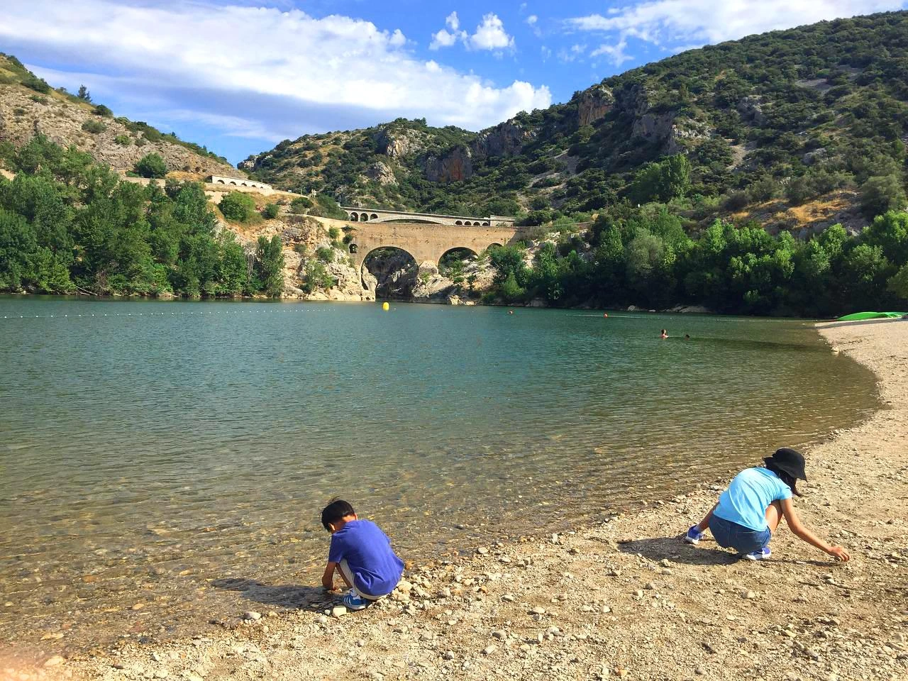 다리 아래로 풍부한 강물이 흐른다. 아직 본격적인 휴가철이 아니어서 그런지, 물이 고인 잔잔한 곳에서 수영하는 사람들이 3~4명 있을 뿐 매우 조용하다. 성수기에는 협곡에서 카누도 타고 다이빙도 하는 사람들로 붐비기 때문에 주차할 곳을 찾기 어렵다는 후기가 많다. 그만큼 경치도 좋고, 물놀이 하기에 천혜의 조건을 갖춘 곳이다. 주차장에 주차하고 숲길을 걸어 다리 아래 잔잔한 물가까지 가는 산책로가 좋았다. 물가에 앉아서 이제 막 꼬리가 사라지고 있는 작은 개구리를 발견하기도 하고, 납작한 돌을 찾아서 물수제비도 뜨면서 평화로운 아침 한 때를 보냈다.