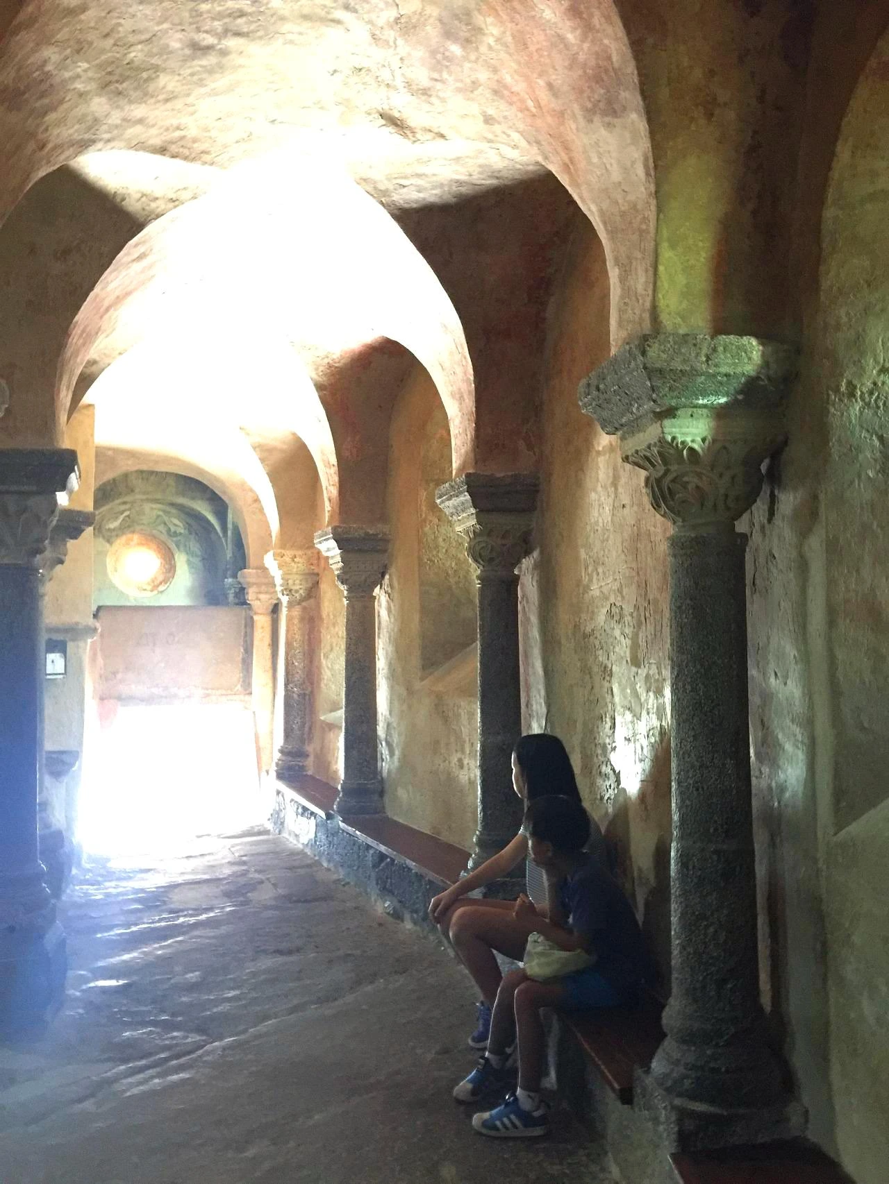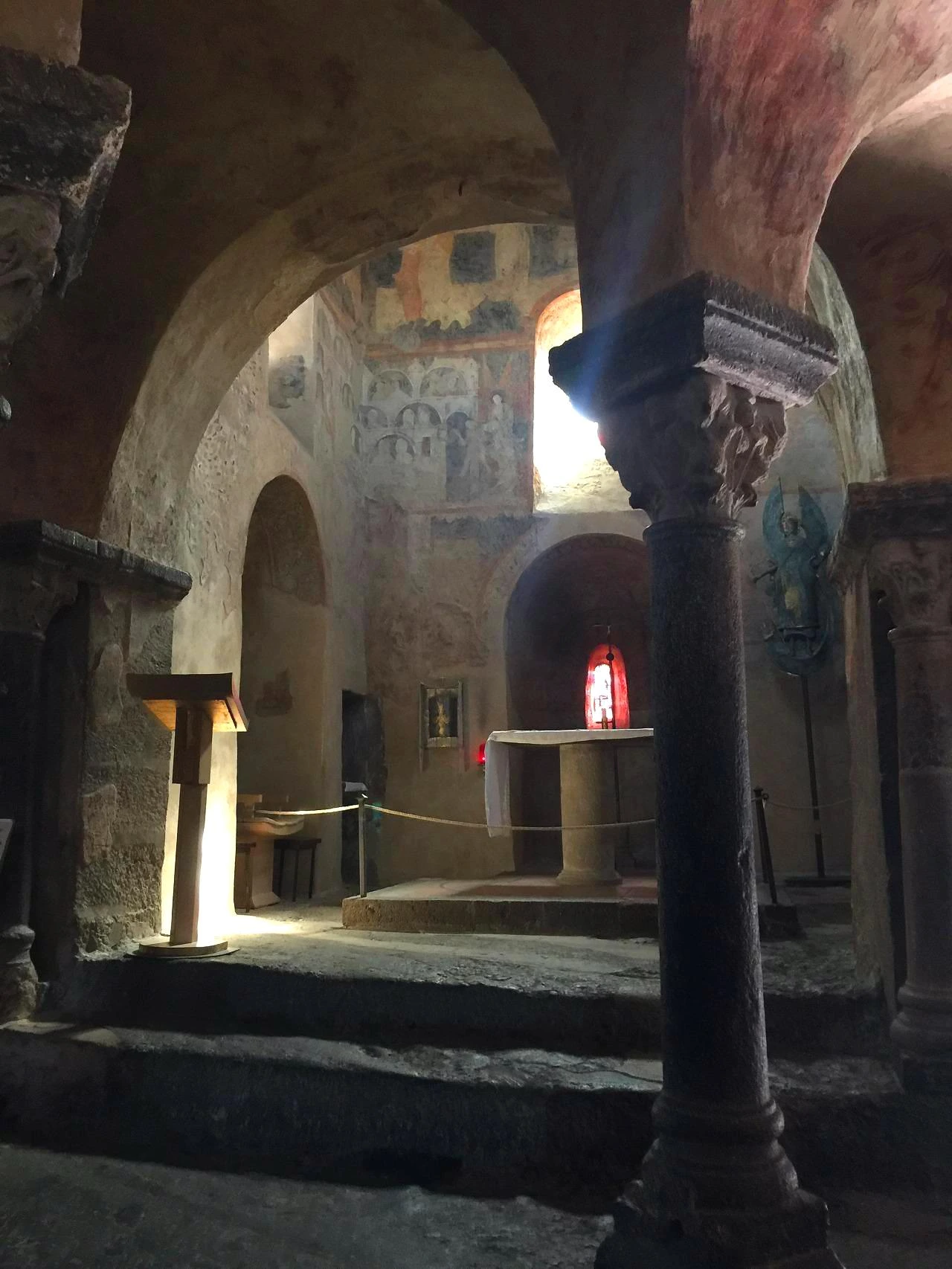 오래도록 와보고 싶었던 곳이라 그런지, 작은 성당 내부는 다른 어떤 큰 성당보다 특별하게 느껴졌다. 소박하고 오래된 성당은 그리스 신전 같기도 하고, 하늘에 가까워서 더 신령할 것 만 같다. 낮은 천장과 빛바랜 벽화들과 손때 묻은 기둥들, 작은 창을 통해 쏟아지는 햇살, 어둠을 밝히는 초들. 잠시 숨을 고르고 침묵의 시간을 갖는다.