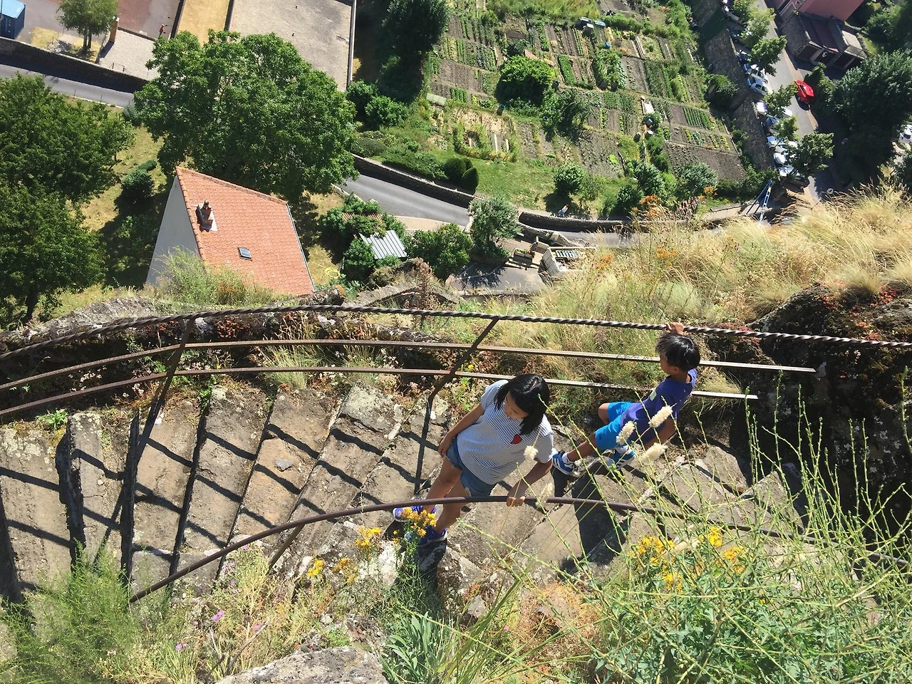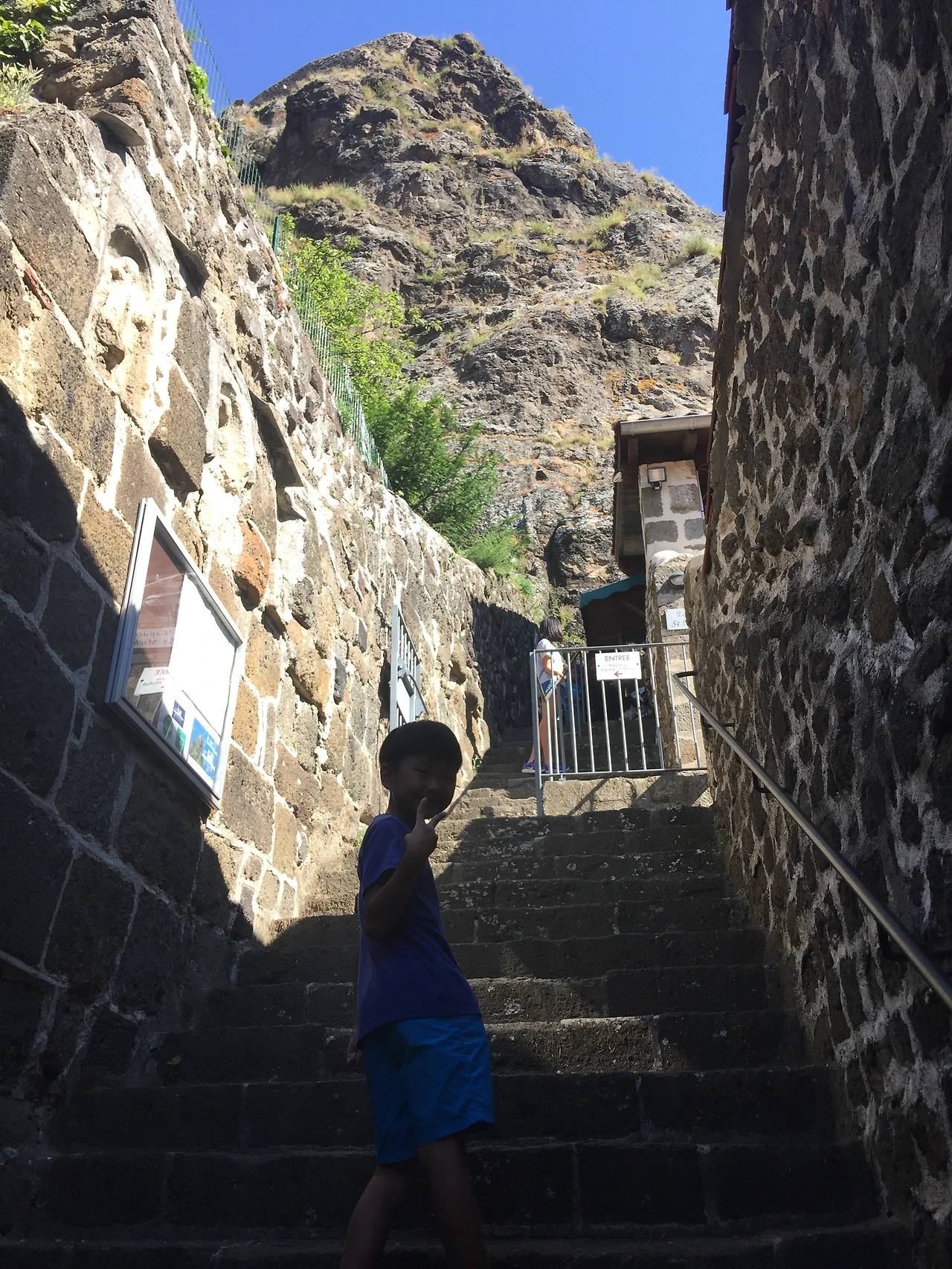 언덕 위에 세워둔 차에 짐을 싣고 내려가 Rocher St. Michel D'Aiguilhe에 올라가야 한다. 268개의 계단을 올라가야 한다. 오늘은 구름이 한 점도 없다. 생수 한 병과 카메라만 들고 가볍게 오른다. 힘을 내라 어린이!