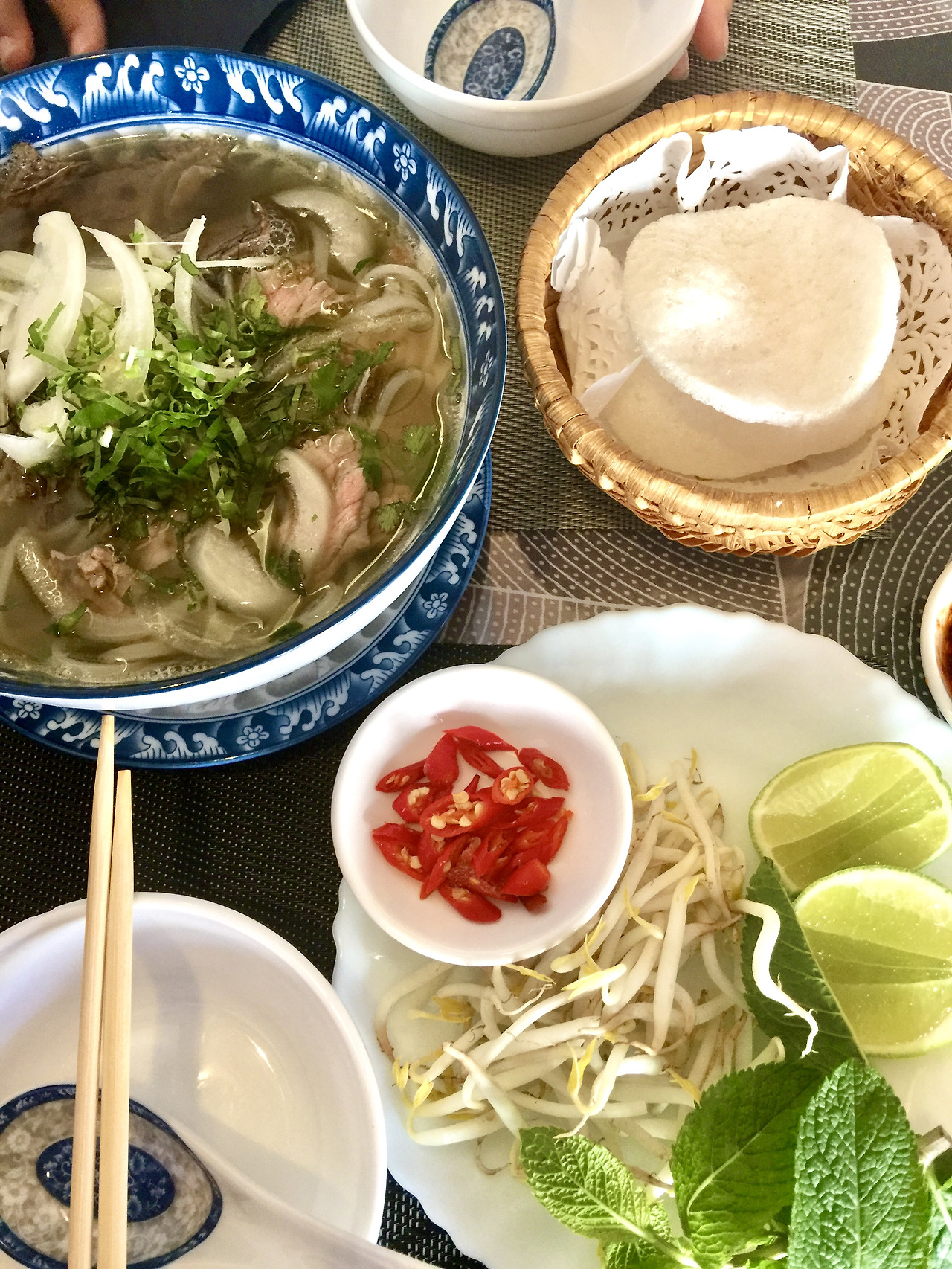 점심에는 무언가 속을 따뜻하게 해 줄 음식을 아이들에게 먹이고 싶어서, 주변에서 평이 좋은 베트남 쌀 국숫집을 찾아갔다. 이때부터 우리의 쌀국수 사랑이 시작된 것 같다. 프랑스가 한때 베트남을 지배했던 역사 때문인지 프랑스 곳곳에는 베트남인이 직접 운영하는 식당을 찾는 것이 어렵지 않았다. 뜨끈한 국물에 레몬즙을 뿌려먹는 쌀국수는 이후 여행에서 가장 반가운 음식이 되었다. 딸도 맛있게 먹고는 기운이 나서 함께 바다에 가서 놀기로 했다.