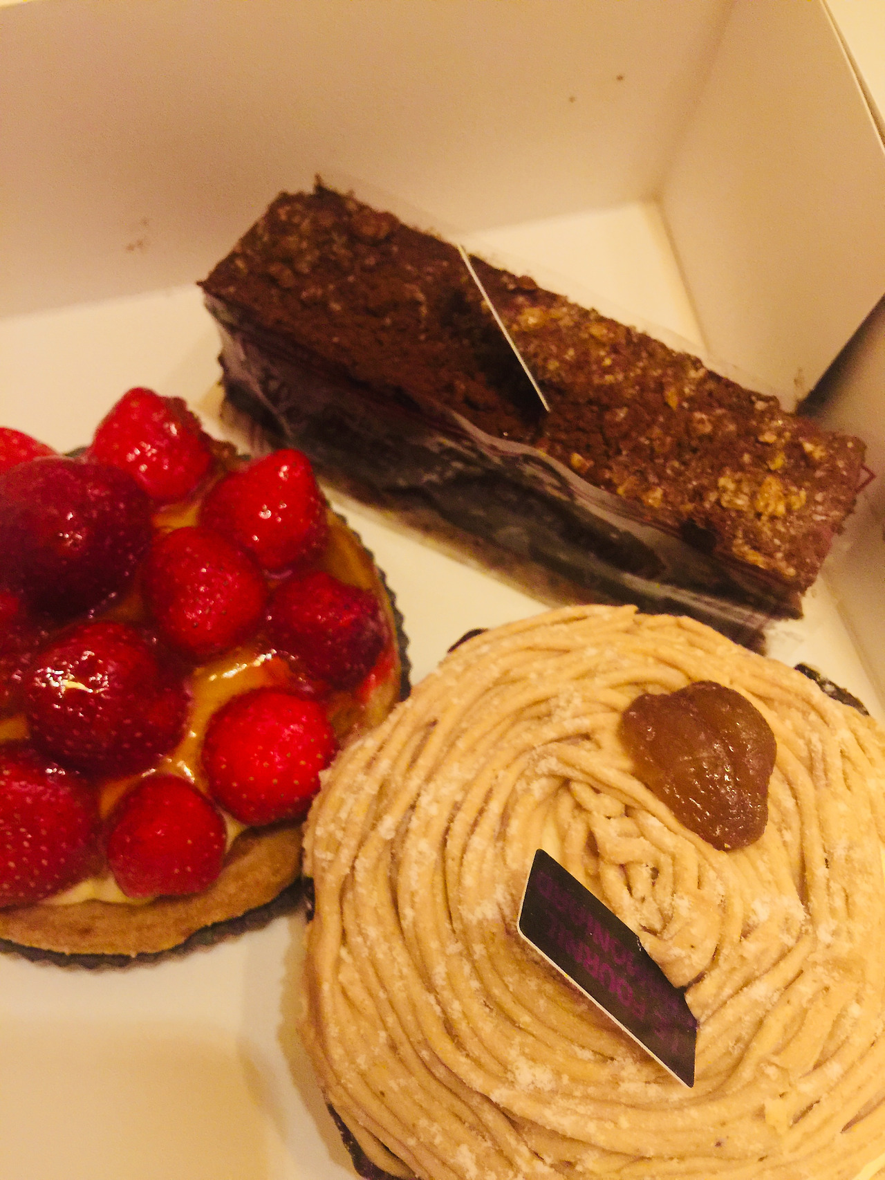 아쉬운 마음을 달래기 위해 딸기파이와 초콜릿이 들어간 케이크와 몽블랑을 사서 숙소로 돌아왔다.