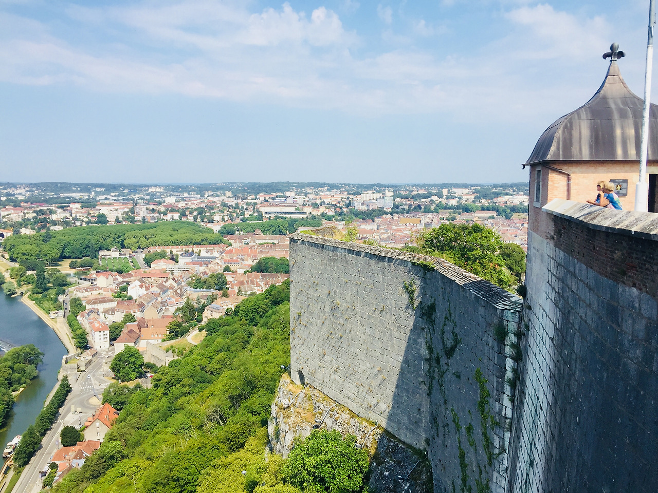 오늘은 브장송의 요새( Citadelle de Besançon) 에 먼저 가볼 예정이다. 이 요새는 강으로 둘러싸인 브장송 시내가 내려다 보이는 100미터 높이 위에 세운 건물이다. 마을에서 요새까지 운행하는 관광용 꼬마열차를 탔다. 한눈에 보아도 높고 탄탄한 벽으로 둘러싸인 난공불락의 요새이다.