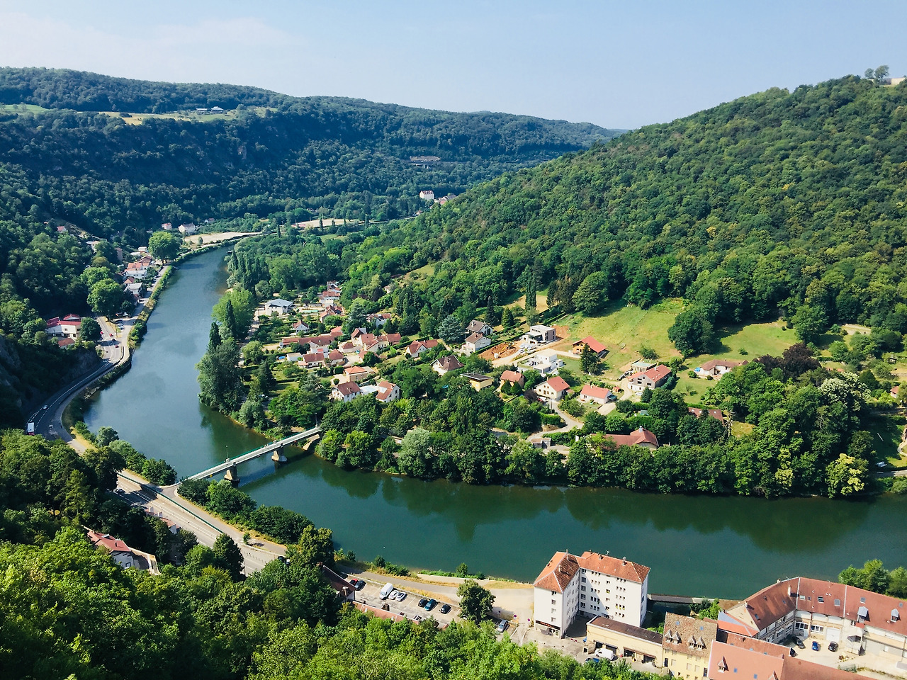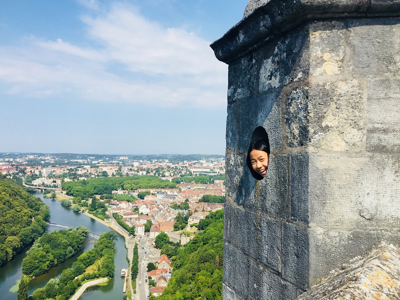 말발굽 모양으로 굽어 돌아가는 두강이 브장송을 둘러싸고, 이 성은 그 입구에 듬직하게 버티고 서서 적들이 함부로 마을에 들어오지 못하게 막고 있는 형상이다. 성벽을 따라 강과 주변 지형을 내려다보았다. 부드러운 강의 곡선과 주황색 지붕들, 공원의 나무들과 막힌 것 없이 펼쳐지는 평야가 시원하다. 프랑스에서도 손에 꼽히는 녹색 도시라고 한다. 그만큼 숲과 공원이 많은 도시이다.