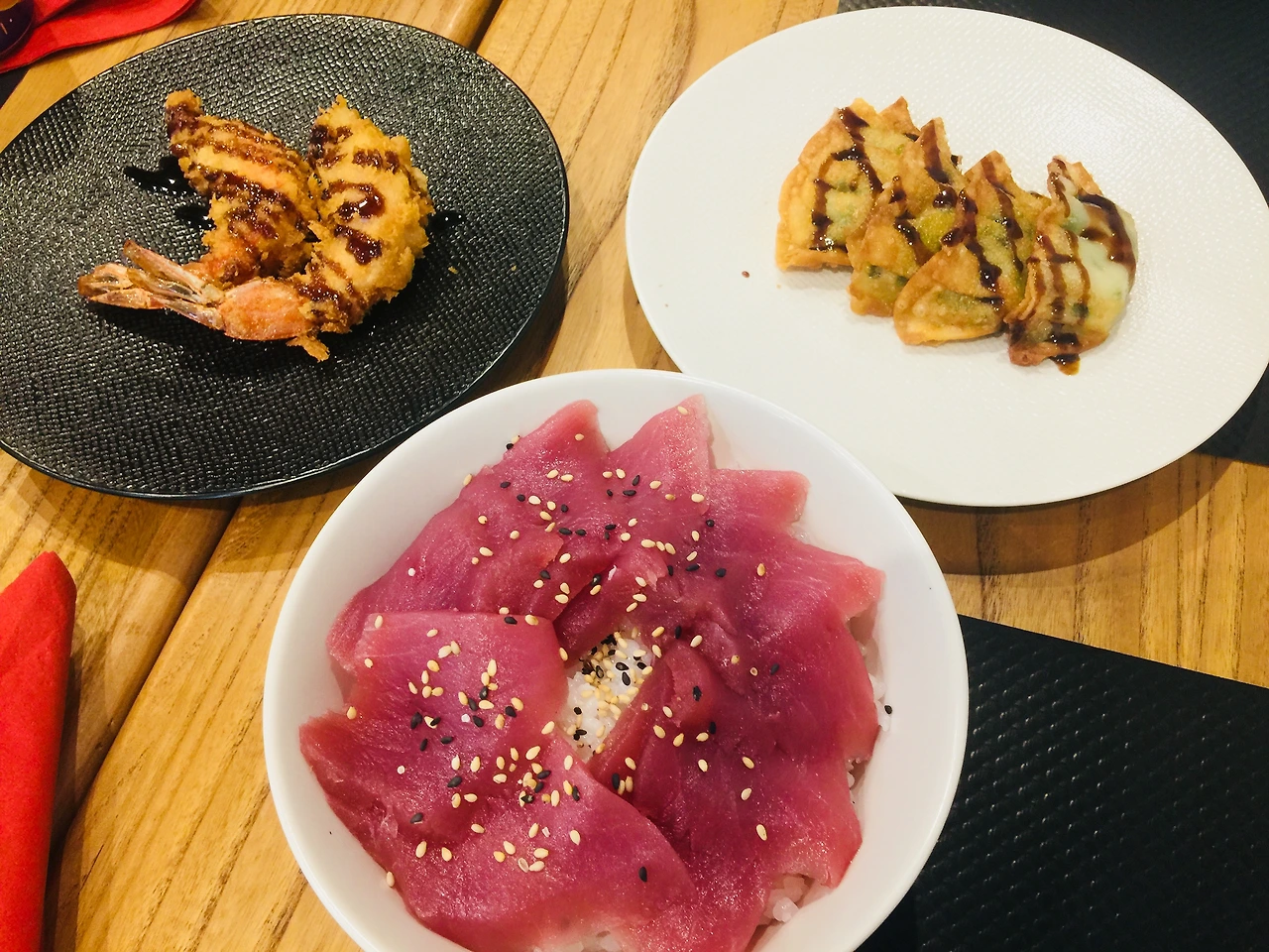 저녁때가 되어 근처 일식당에서 저녁을 먹었다. 참치회덮밥과 초밥, 라멘을 제법 근사하게 만들어 주었다.