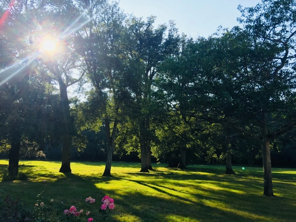 저녁 식사 전에 한 시간 정도 성안에 있는 숲길을 걸었다. 나무로 둘러싸인 넓은 잔디밭에서 아이들이 뛰어다니기도 했다. 아들이 고무줄로 날리는 비행기를 날렸는데 그만 비행기가 나뭇가지에 걸렸다. 신발을 벗어던져서 비행기를 땅에 떨어뜨릴 수 있었다. 부드러워진 늦은 오후의 햇살이 나무 사이로 부드럽고 환한 빛을 비춘다. 멀리 하늘에 열기구가 떠 간다.