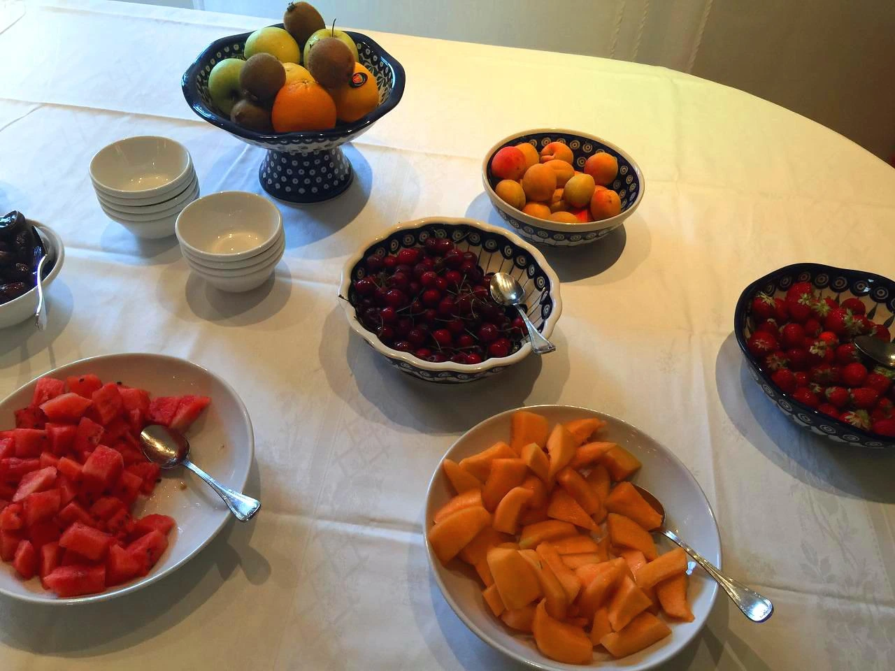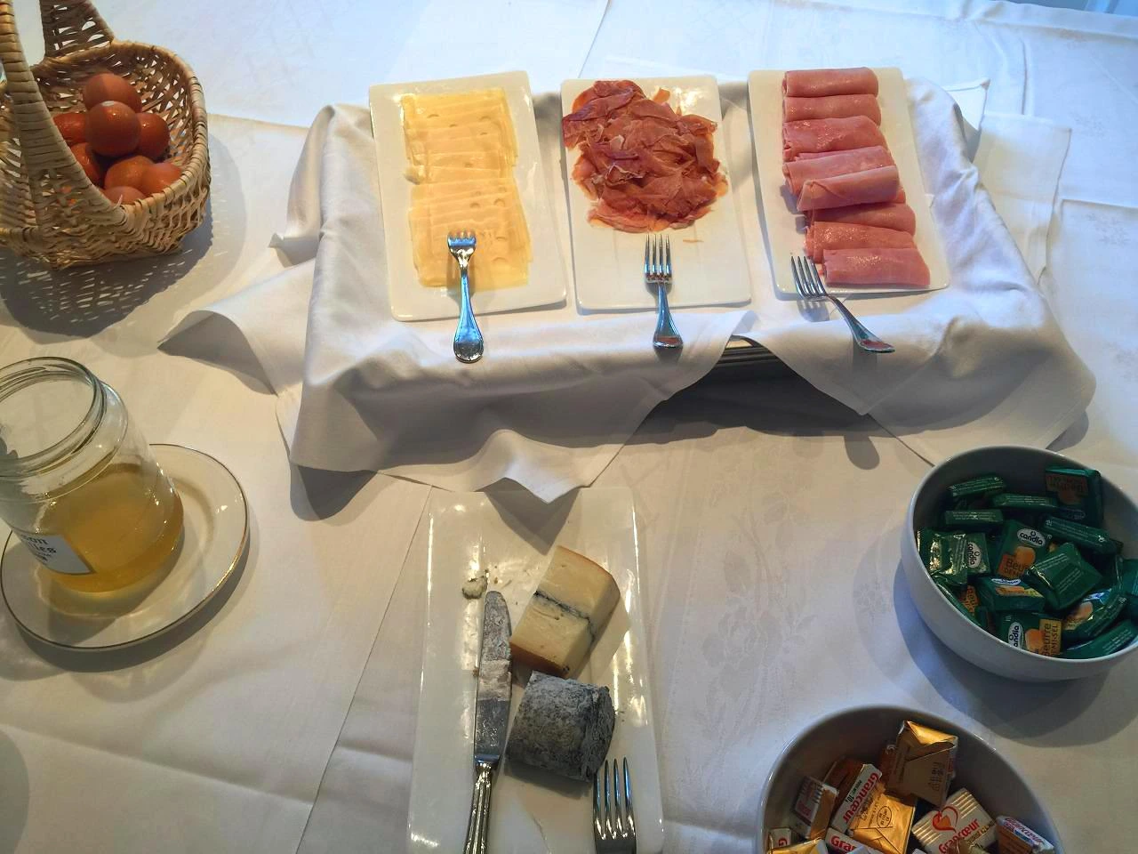 호텔의 뷔페식으로 차려진 조식을 먹었다. 살구, 수박, 딸기와 멜론 등의 과일과 서너 가지 종류의 치즈, 햄과 삶은 달걀, 신선한 오렌지 주스와 크루아상, 바게트 등이 정성스럽게 준비되어 있다.