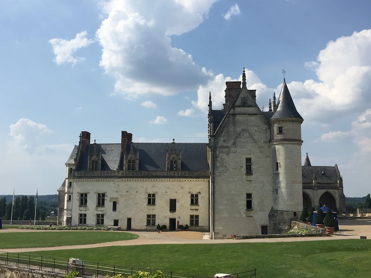 20분 거리의 앙부아즈 성(Château Royal d’Amboise)으로 간다. 루아르 강을 내려다보는 언덕에 지어진 요새의 역할도 했던 성이다. 여러 왕들이 사랑했던 성으로 증축을 거듭하여 오늘날의 모습이 되었다. 성 아래로 호수처럼 잔잔한 루아르 강과 강 건너 집들과 평야가 한눈에 들어온다.