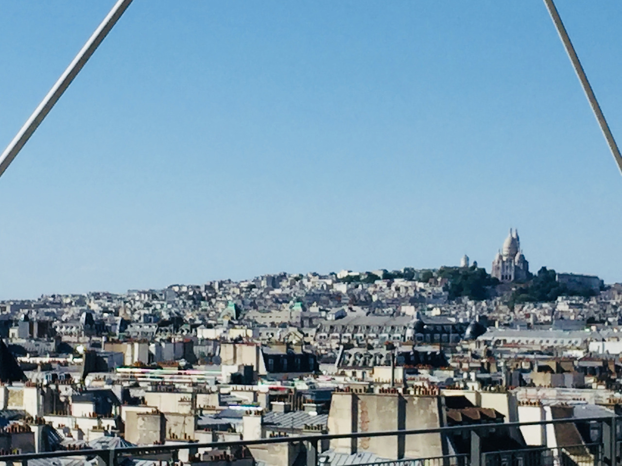 퐁피두 센터에서 사크레쾨르 대성당 (Sacré-Cœur)이 보인다. 높은 곳에서 바라본 파리는 수많은 건물들로 서울 이상으로 복잡해 보인다. 물론 파리 중심지는 서울의 도심과는 달리 오래된 건물들이 대부분이다.
