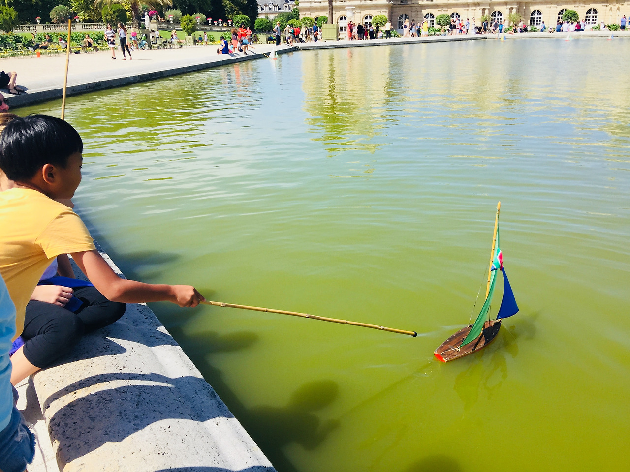 근처 뤽상부르 공원을 들렀다. 공원 한가운데 커다란 연못에서 아이들이 돛을 단 작은 배를 띄우고 놀고 있었다. 아들도 하고 싶어 하기에 하나를 빌렸다. 기다란 막대로 배를 힘차게 밀면 바람을 타고 유유히 호수 위를 미끄러져 간다. 아들 녀석은 배를 따라 그 커다란 연못 주변을 몇 바퀴씩 뛰어다녔다. 한 시간 정도 땀을 뻘뻘 흘리며 뛰어다니고 배를 반납할 시간이 되어서야 공원을 떠났다.