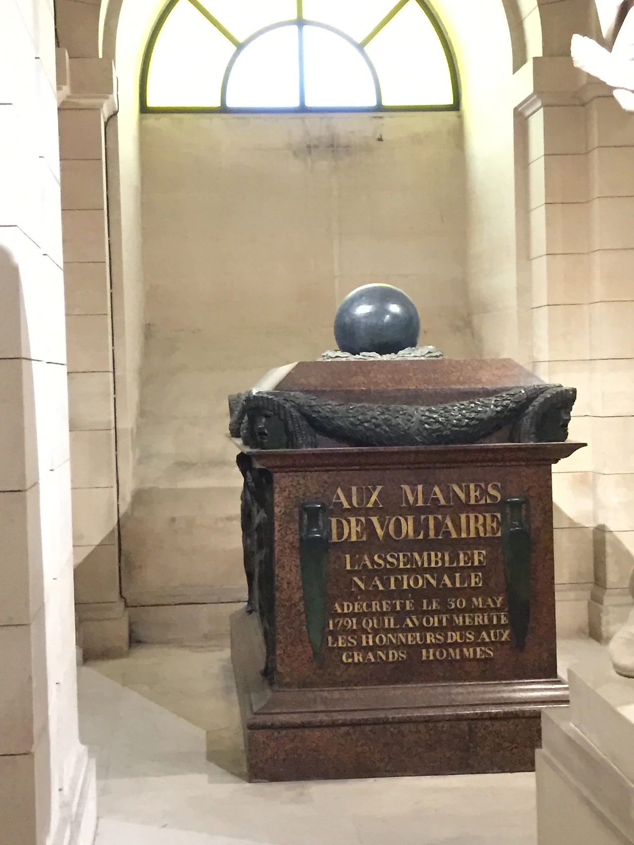 지하는 여러 개의 묘실이 있다. 각 방의 크기에 따라 2~6개의 묘지가 있다. 에밀 졸라, 빅토르 위고, 볼테르, 알렌상드르 뒤마와 같은 유명인들이 잠들어 있다. 역사적인 인물들의 묘지와 묘지에 새겨진 이름을 보고 있자니 왠지 비현실적인 기분이 들었다. 사실 나도 몇몇 유명인들의 이름과 대략의 이야기는 알고 있지만, 깊이 알지는 못하기에 그저 한 곳에 이렇게 많은 유명인의 무덤을 모아 둔 것이 신기한 정도이다. 아이들에게도 내가 알고 있는 상식 수준에서 간략하게 설명을 해주었다.