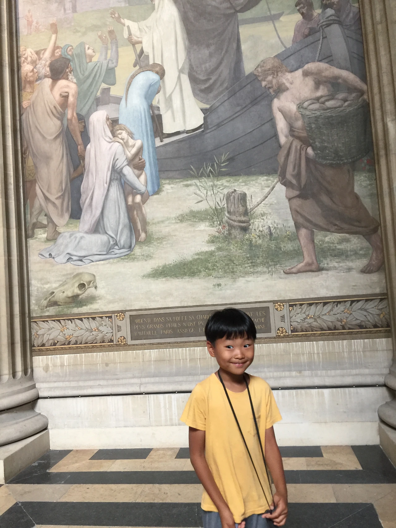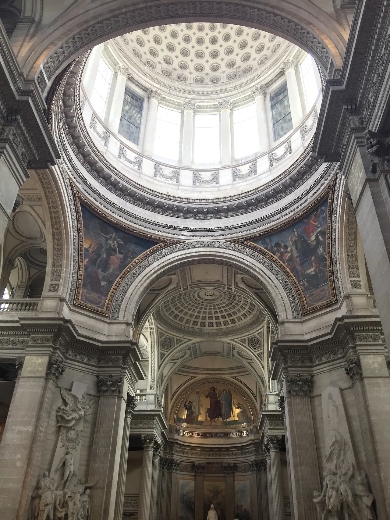 로비에는 판테온 건물의 구조를 볼 수 있도록 사람 키보다 더 큰 모형이 있어서 아이들이 건물을 이해하는데 도움이 되었다. 거대한 로비는 높은 천장과 기둥, 아치와 둥근 천장을 볼 수 있으며, 규모와 장식미로 압도당하는 느낌이 든다. 혁명으로 흩어진 민심을 모으고 파리 시민의 자긍심을 높이기 위해 만든 대형 건축물이라고 한다. 어느 나라에서건 사람들 환심을 사려는 토목공사는 효력이 있구나 생각했다.