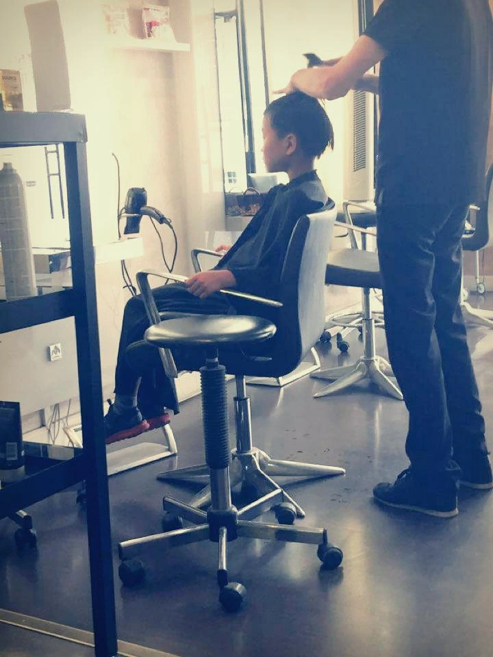 한 달 넘게 미용실을 가지 못한 아들의 미모를 위해 동네에 있는 미용실에 먼저 들렀다. 원래는 프랑스 작은 마을의 나이가 지긋한 할아버지가 운영하는 이발소에 데려가고 싶었는데, 마땅한 곳을 발견하지 못했다. 대신 파리 한복판의 세련된 미용실에서 헤어컷을 해볼 수 있는 기회가 생겼다. 삼십대로 보이는 아저씨 미용사가 가위로 섬세하게 잘라 주었다. 기계는 사용하지 않고 가위로 조금씩 정성을 들여 잘라 주었고 샴푸까지 해주었다. 본인도 만족스러워하니 다행이다.