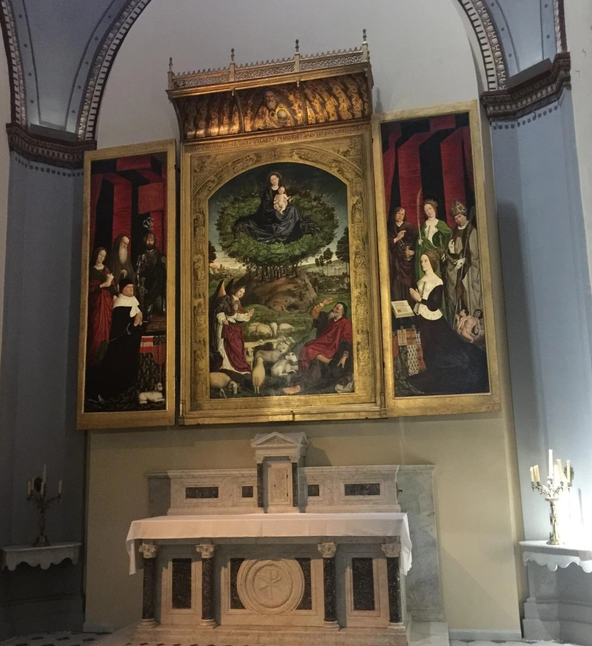 분수대에서 목욕하는 강아지가 재미있어 바라 보기도 하다가 생소베르 성당(Cathédrale Saint Sauveur)으로 발걸음을 돌렸다. 이 성당은 비교적 크고 아름다웠다. 밖의 기온이 35도 정도 되었는데, 내부는 최소 10도는 낮은 것 같았다. 아이들은 초를 켰고, 나는 잠시 방명록을 기록했다. 평상시 내가 애국자라는 생각은 해본 적 없지만 어쩐지 이렇게 멋진 곳에 오게 된 것에 감사하며, 한반도의 평화와 치열하게 사는 한국인의 영혼을 위해 기도하는 마음이 생겼다. 이 성당에는 15세기의 초기 르네상스 시대의 화가 니콜라 프로망[ Nicolas Froment ]의 『불타는 수풀 속의 성처녀』라는 제단화가 있다.