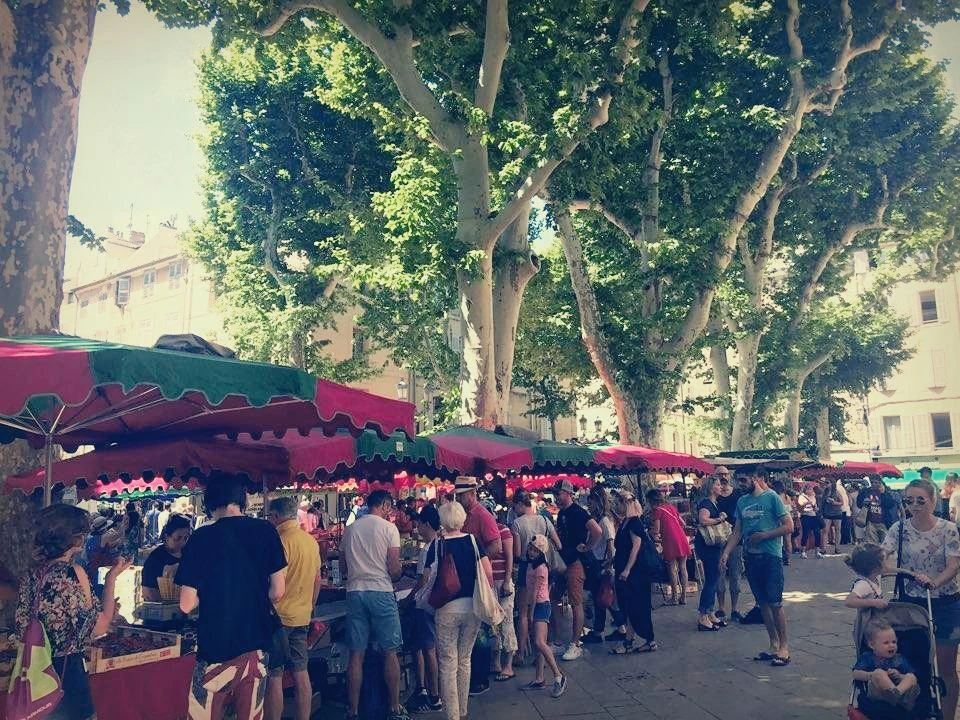 시청(Town Hall of Aix-en-Provence) 앞 광장에는 일요일마다 시장이 열린다. 마을 안 광장에는 키 큰 나무들이 그늘을 만들어주고, 시계탑, 시청 건물과 레스토랑, 많은 상가들, 관광객들이 북적이는 흥겨운 곳이다. 여행 중 만나는 시장은 또 얼마나 우리의 흥미를 끄는지. 지역 주민이 장 보러 온 풍경을 보는 것도 재미있다. 주로 무엇을 사는지, 어린아이와 함께 온 부모들은 아이들을 어떻게 대하는지 엄마로서 궁금한 점이 많아서 유심히 관찰하게 된다. 20여 가지의 다양한 양념을 넣어 절인 올리브들과, 라벤더로 만든 향기 주머니와, 예쁜 색의 비누들, 아이 얼굴만 한 토마토와 형형색색의 저렴한 꽃다발을 시간 가는 줄 모르고 보게 된다. 특히나 병에 든 각종 소스와, 꿀과 잼을 보면 한 개씩 다 사보고 싶을 만큼 그 맛이 궁금하다.