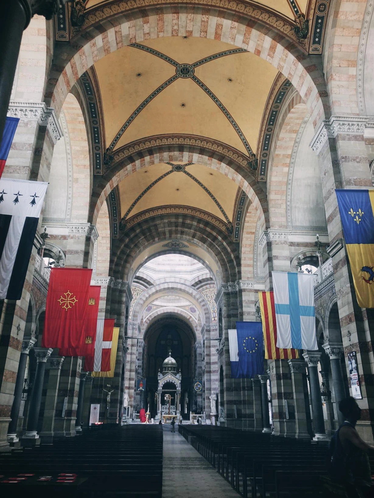 마르세유 대성당(Cathédrale La Major)은 중세 이후 프랑스에 지어진 성당 중에서 가장 큰 성당이다. 녹색과 흰색의 벽돌을 교차하며 지었고, 돔과 모자이크 장식이 있는 비잔틴 양식의 성당이라, 다른 고딕 양식의 성당과 확연히 구별이 된다. 3000명을 수용할 만큼 크고 높은 성당이라 매우 인상적이다. 아이들은 성당에 가면 가장 먼저 2유로를 기부하고 초를 켠다. 자리에 앉아서 5분 동안 침묵의 시간을 갖는다. 짧은 시간이지만 수다쟁이 아들까지 침묵하며 함께 묵상하는 이 순간은 여행의 쉼표를 찍는 것과 같다.