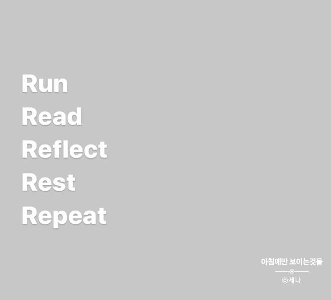 1.Run - 코로나가 오기 전에도 코로나가 함께하는 지금도 아침에 달리기는 매일 해야 하는 건데요. “달리기 매일 하는 거 힘들지 않아요?”라는 질문을 자주 받아요.