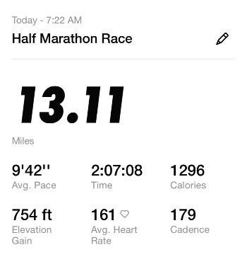 하프 마라톤 거리 21.10킬로 13.11 마일이다. 두 시간 8분, 이 정도라면 마라톤 4시간 20분 안에 뛸 수 있는 건가?라는 생각도 해본다. 오늘 아침 6시에는 상상하기 힘들었던 결과. 잠옷 입고 뒹굴 거리는 모습이 더 상상되었던 아침이었다.