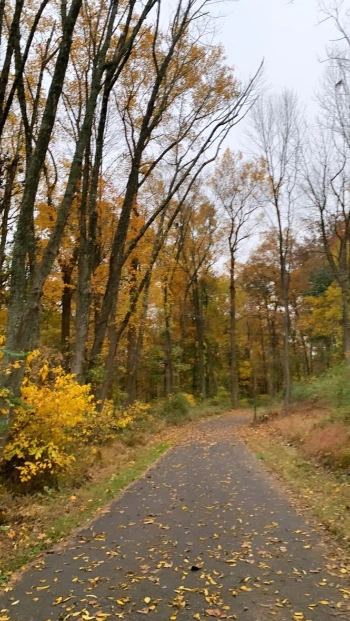 처음 지나가는 숲길 구간, 저번 주와 다르게 단풍이 모두 노랗게 변해 있다. 아직 흐린 날이지만 그 노란색은