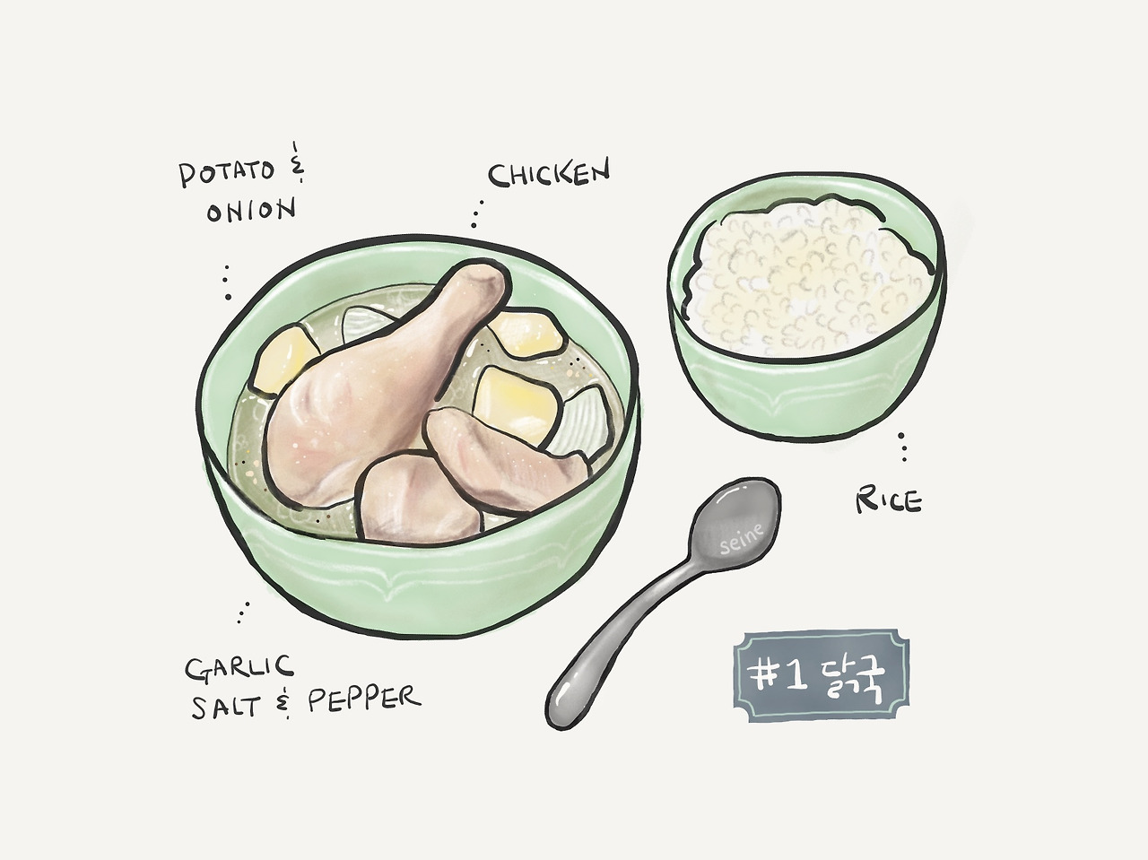 오랜만에 그날을 떠올리며 닭국을 끓인다. 차이가 있다면 그때는 며칠 간의 수면부족으로 인한 피로를, 이참에는 장염으로 쫄쫄 굶은 허기를 회복해야 한다는 점. 한국 스타일에 맞게 뼈째 조각내어진 볶음탕용 닭 한 마리로 재료가 업그레이드되었고 생강 한 톨에 쪽파도 한 줄기 있으니 아마 국물 맛은 이번이 더 나을지도 모르겠다. 아 참, 또 하나 차이가 있다면 그때는 며칠 밤을 새워도 다시 살아지는 20대를, 이제는 어쩌다 하룻밤만 새워도 내일이 (자느라) 사라지는 30대를 보내고 있다는 점. 하지만 똑같다. 그때나 지금이나 기력이 쇠하니 닭을 끓여 먹자 생각이 든 건.