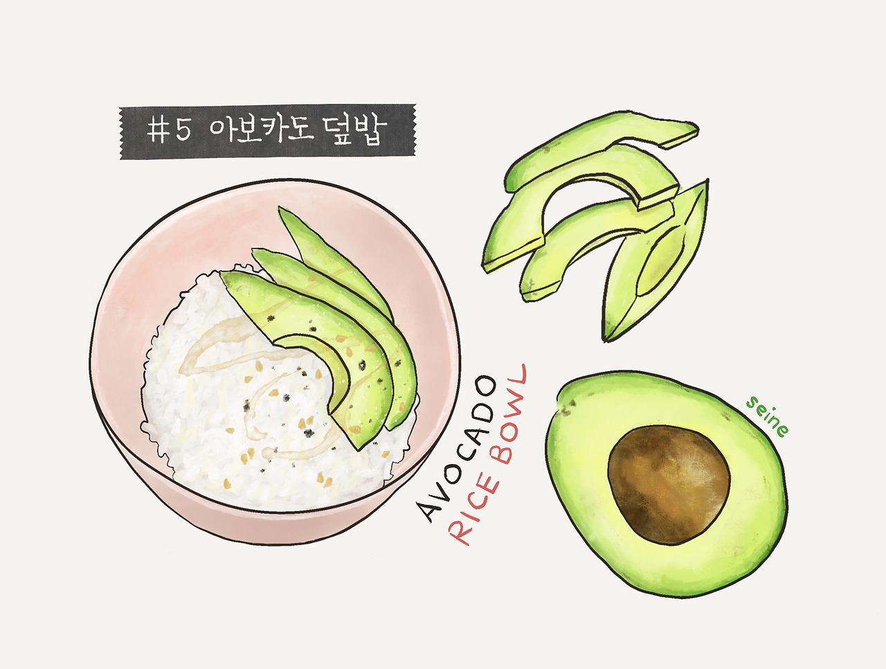 막상 당시에 나는 아보카도를 잘 안 먹다가 몇 년 전부터 가끔씩 사 먹고 있다. 몇 개의 아보카도를 먹는 동안 한 번은 꼭 아보카도만 올린 덮밥을 해 먹는데, 그때면 어김없이 언니를 생각한다. 나는 밥에 간장을 약간 끼얹고, 아보카도에 소금, 후추, 참기름, 깨소금까지 뿌려 덮밥 풀 세트로 진화시켰다.