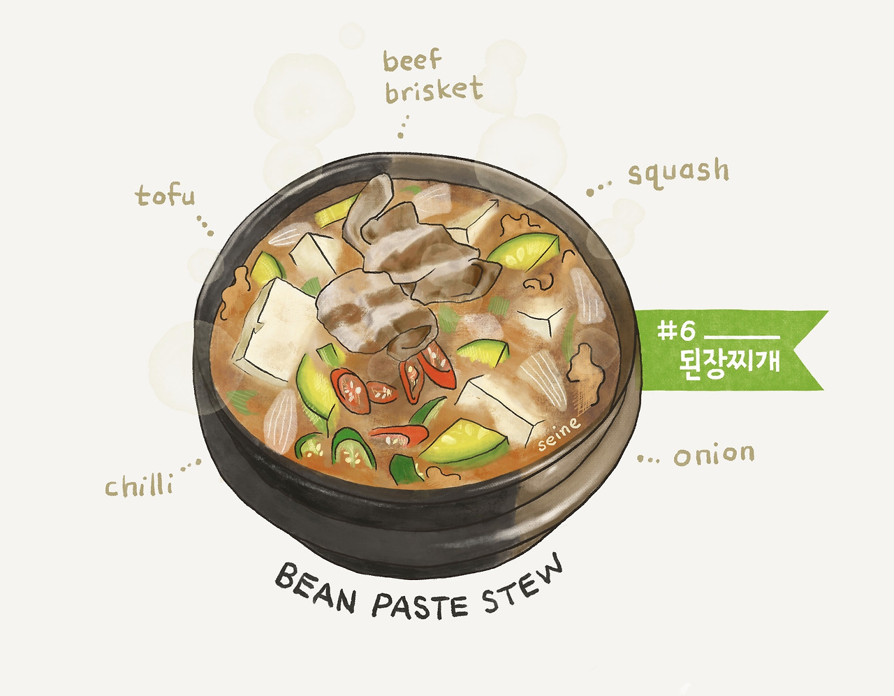 된장의 짭조름함과 양파의 달금함이 섞이며 자작해진 국물 맛을, 그 국물이 구석구석 밴 보드라운 두부와 몰씬한 애호박의 식감을 좋아한다. 차돌박이면 차돌박이 바지락이면 바지락, 재료가 무어든 어우러지고 마는 된장의 포용력을 좋아한다. 뚝배기에 바글바글 끓인 된장찌개만이 풍기는 푸근함을, 밥 위에 덜고 품위 없이 비벼 한술 푸지게 떠야 제맛인 편안함을 좋아한다.