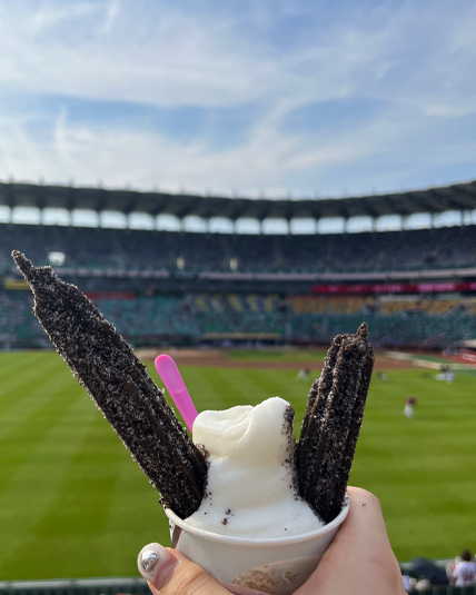 와팡과는 달리, 극강의 단맛이 합쳐진 오레오 츄러스를 추천드리고 싶어요. 특히 아이스크림과 오레오 츄러스가 합쳐진 아+츄는 야구팬들 사이 문학 경기장에서 꼭 먹어야하는 음식으로 자리매김했답니다.