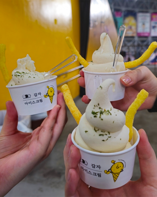 고척하면 방송사에서 소개한 크림새우만 떠올리실 수 있는데요. 저는 이 감자 아이스크림을 소개 드리고 싶어요. 아이스크림 맛은 감자와 크림이 섞인 듯한 미묘한 단맛과 아이스크림 옆에 끼워주는 감자과자가 짭쪼름해 단짠의 조화를 이룬답니다. 처음에 *감자과자는 뭐지…?*하며 괴랄한 음식일 거라 생각했는데, 생각보다 어울려서 놀랐답니다.