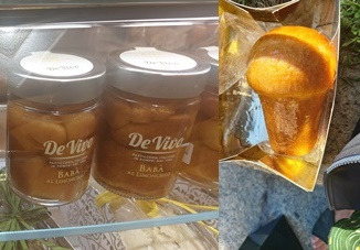 아래 사진 속 빵은 브리오슈에 술이 들어간 시럽을 흠뻑 적신 바바인데 원조는 프랑스로 알려져 있지만 왠지 이탈리아에서 더 자주 본 것 같다. 럼이 들어간 바바오럼 외에 리몬첼로, 혹은 다른 리큐어가 들어가거나 알코올 성분이 없는 것도 있다. (세일즈맨 칸타로의 달콤한 비밀을 보면 생크림에 곁들여 먹는 장면이 나옴) 한개 포장해서 나오는데 5분도 지나지 않아 시럽이 줄줄 새는 낭패를 겪었다. 이 때문인지 왼쪽 사진처럼 아예 시럽에 담근 병조림 제품도 나온다.