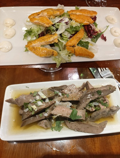 이 두 메뉴는 사실 원래 아는 맛..이라고 할 법 하다. 대구알을 구워서 아이올리와 낸 것인데 좀 바짝 구워져서 식감은 다소 퍽퍽한 편. 명란젓을 생각하고 엄청 짤거라 생각했는데 짠맛은 거의 안난다. 돼지간은 우리나라 분식집 순대와 그닥 다르지 않은 맛이다. 한국식 술안주가 생각난다면 시켜볼만한 메뉴임.