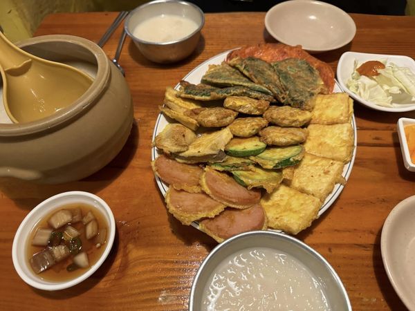 이거슨 18000원씩 하는 모둠전이다. 주문받자마자 바로 만들기 때문에 시간이 꽤 걸리지만 만들어놓고 파는 전에 비하면 비교가 안될 정도로 맛있다. 추억의 분홍소시지부터 두부, 애호박 등이 있고 내가 가장 좋아하는 종류는 깻잎 사이에 다진 고기를 끼운 전이다.