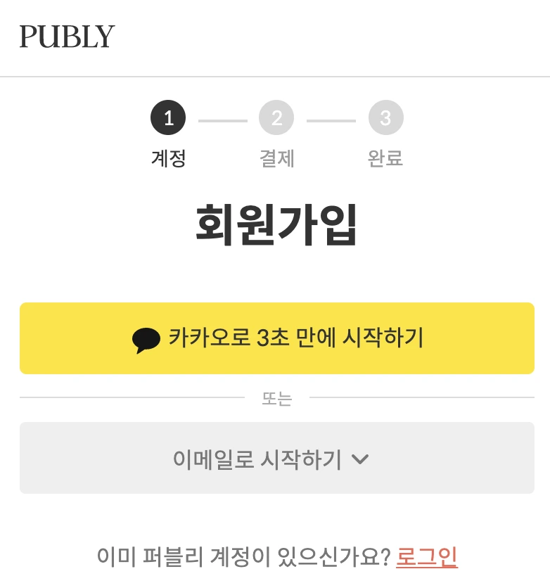 CTA : 카카오로 3초 만에 시작하기 / 이메일로 시작하기