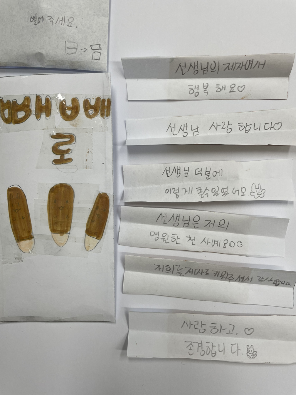 빼빼로데이였어요. 큰 의미는 없지만 아이들이 귀여운 것들을 꼼꼼히 만들어 건네어 주었습니다. 어쩜 이렇게 기발하고 선명하고 솔직한 마음들일까요. 어쩌면 가장 창의적이고 분명하게 마음을 전하는 방법을, 아이들은 본능적으로 알고 있을지도 모르겠다는 생각을 합니다.